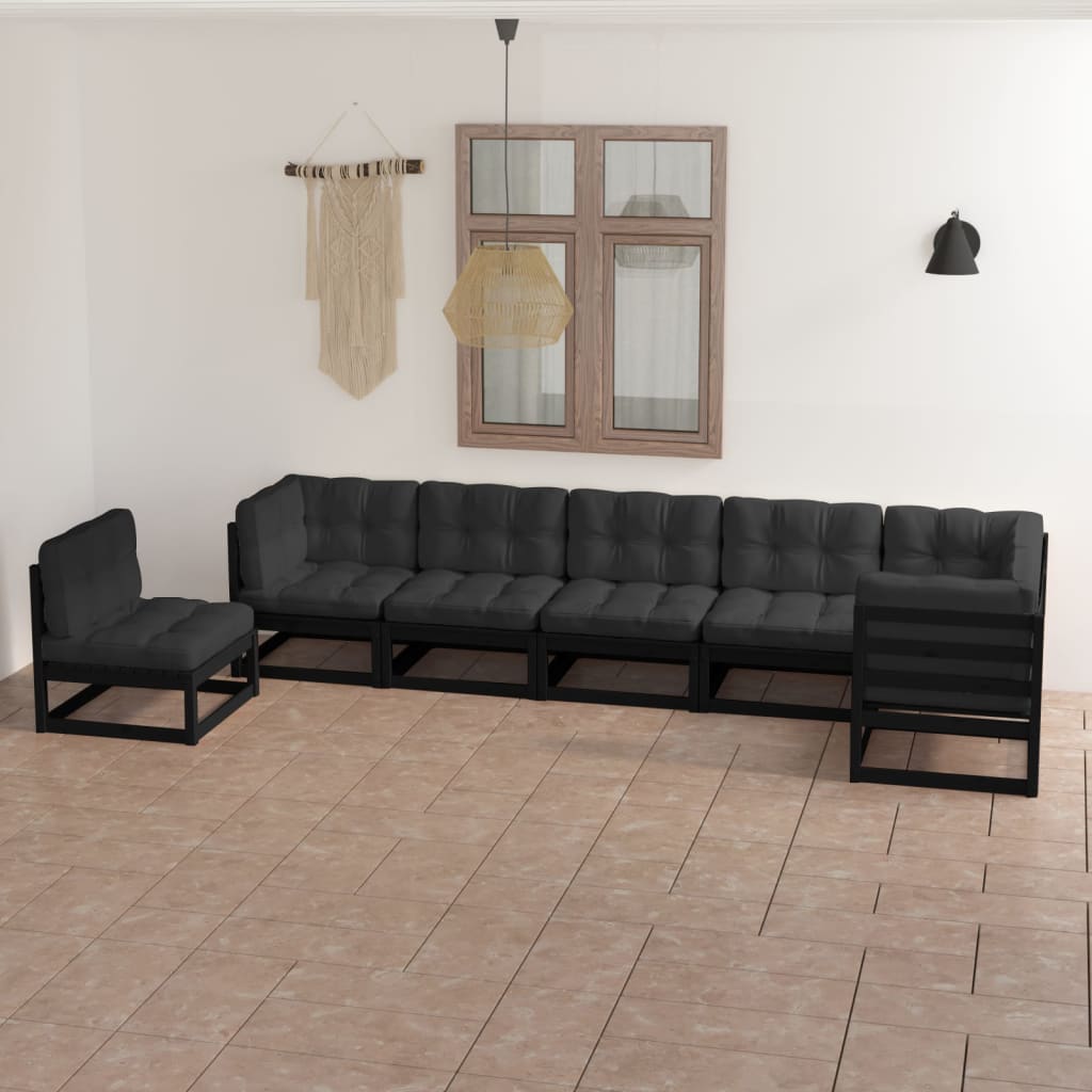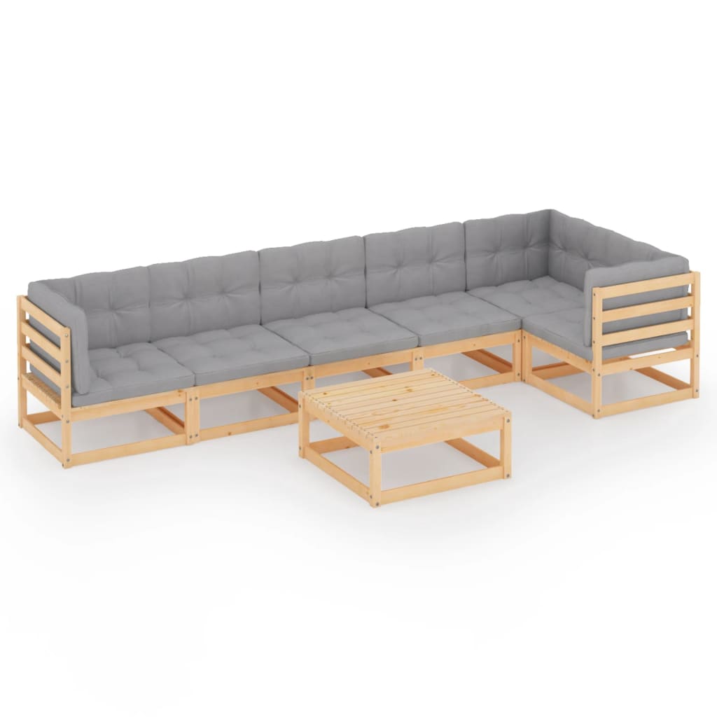 7-tlg. Garten-Lounge-Set mit Kissen Kiefer Massivholz