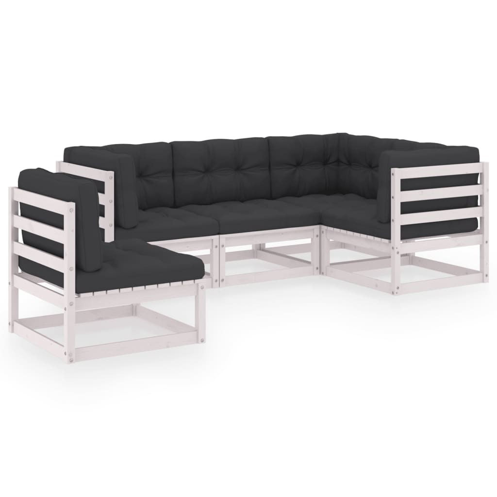 5-tlg. Garten-Lounge-Set mit Kissen Kiefer Massivholz