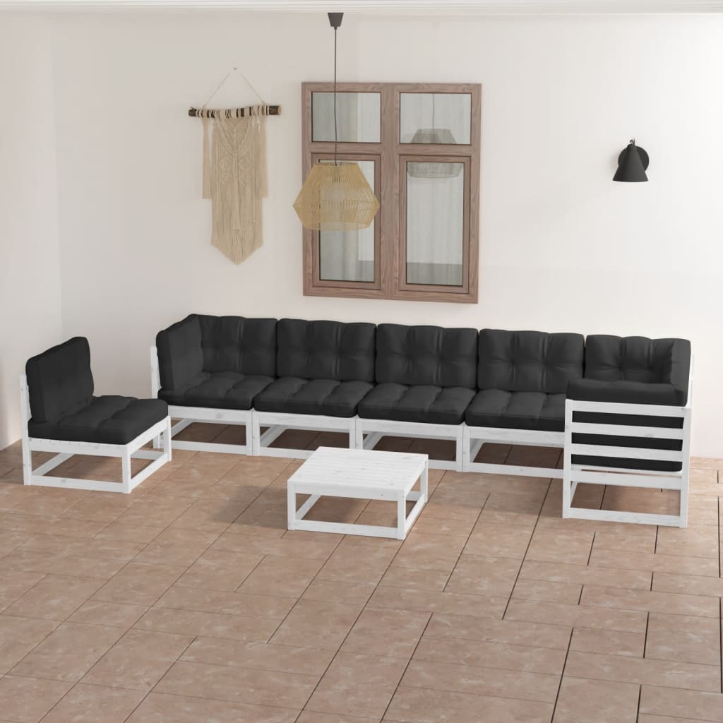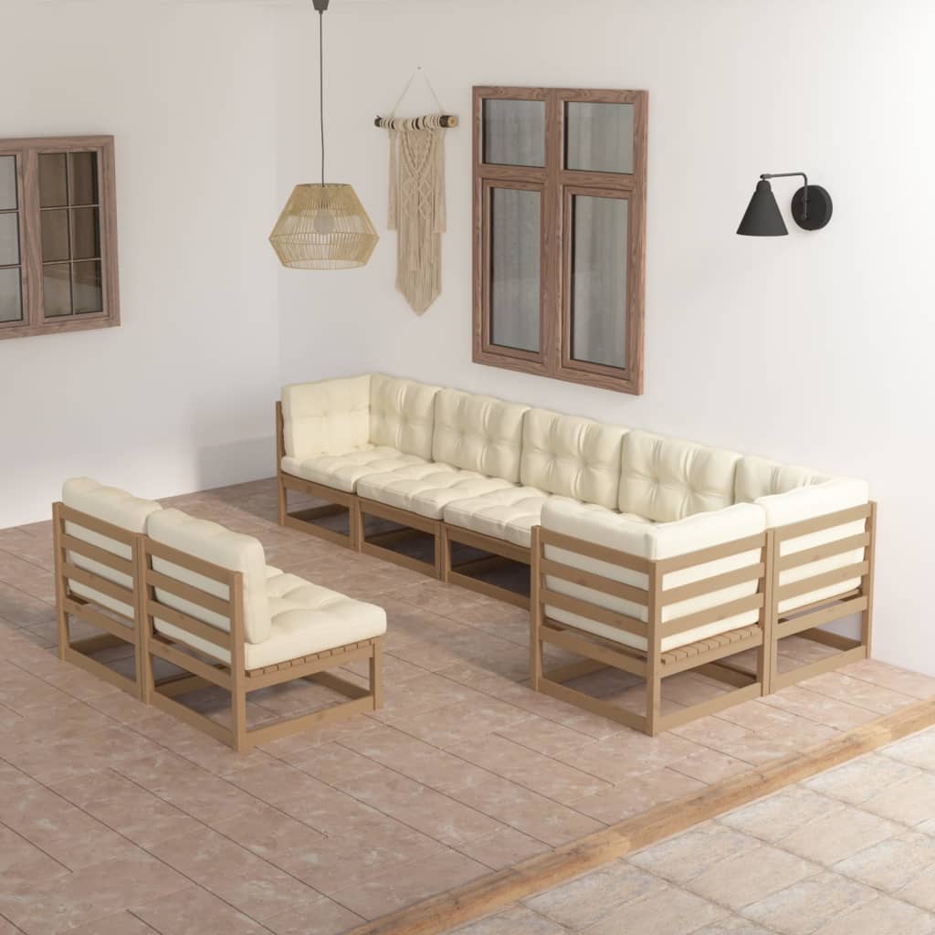 8-tlg. Garten-Lounge-Set mit Kissen Kiefer Massivholz