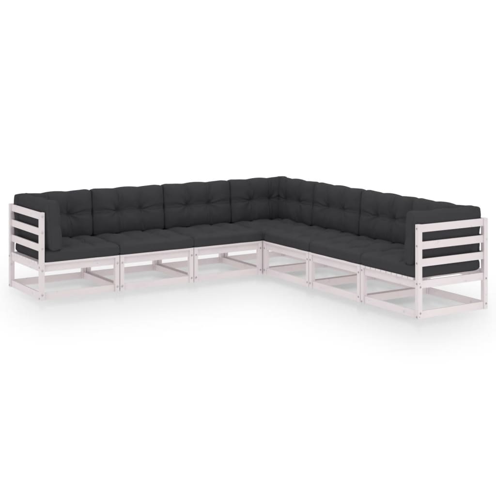 7-tlg. Garten-Lounge-Set mit Kissen Weiss Kiefer Massivholz