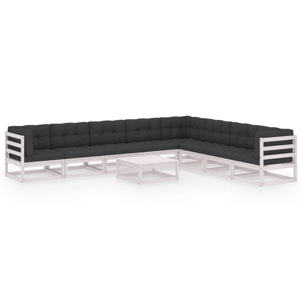 9-tlg. Garten-Lounge-Set mit Kissen Weiss Kiefer Massivholz