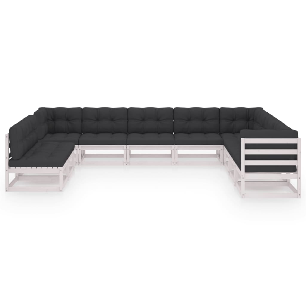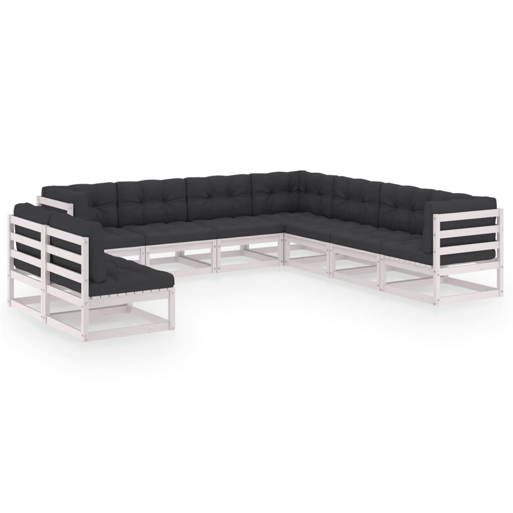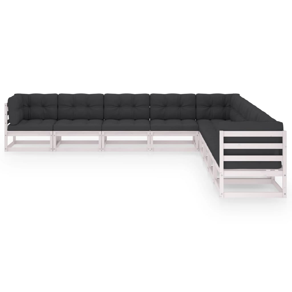 10-tlg. Garten-Lounge-Set mit Kissen Weiss Kiefer Massivholz