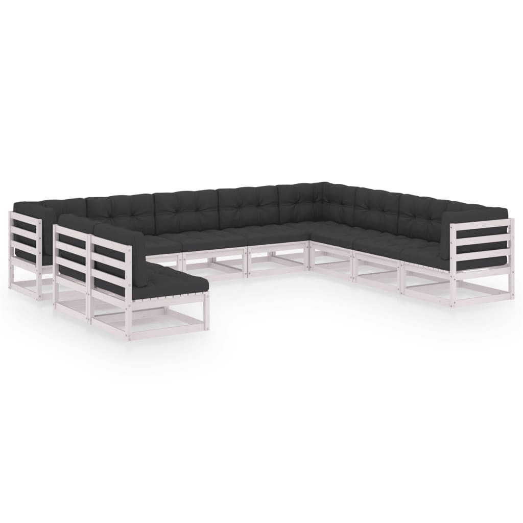 12-tlg. Garten-Lounge-Set mit Kissen Weiss Kiefer Massivholz