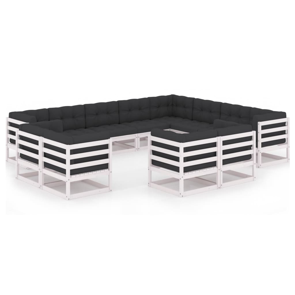 14-tlg. Garten-Lounge-Set mit Kissen Weiss Kiefer Massivholz