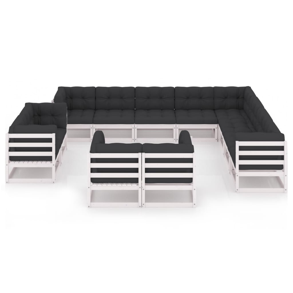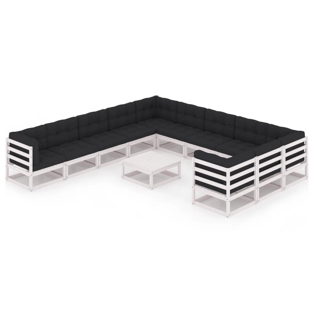 13-tlg. Garten-Lounge-Set mit Kissen Weiss Kiefer Massivholz