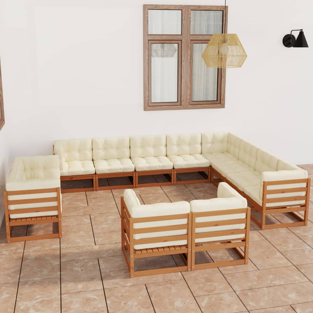 12-tlg. Garten-Lounge-Set Kissen Honigbraun Kiefer Massivholz