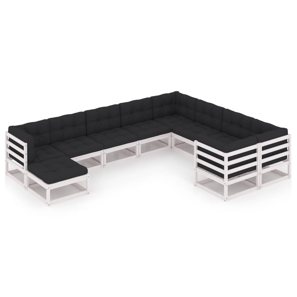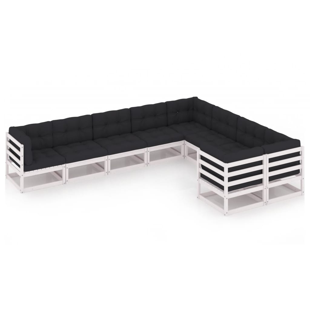10-tlg. Garten-Lounge-Set mit Kissen Weiss Kiefer Massivholz