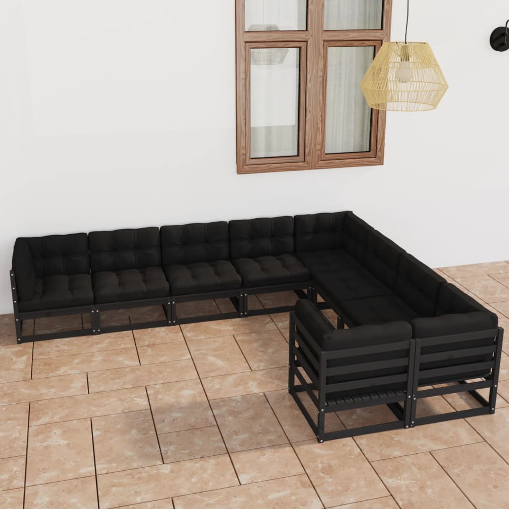 10-tlg. Garten-Lounge-Set mit Kissen Schwarz Kiefer Massivholz