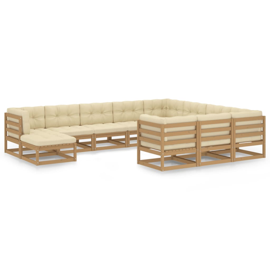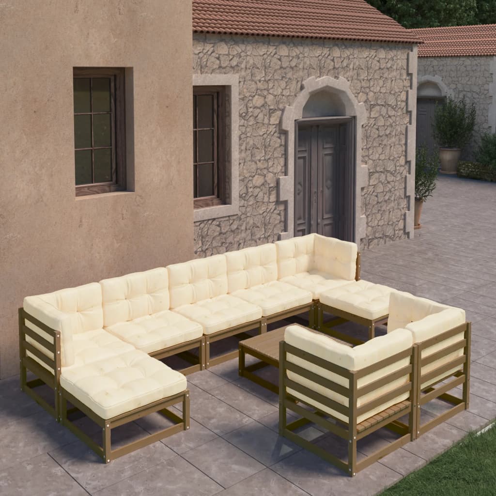 10-tlg. Garten-Lounge-Set Kissen Honigbraun Kiefer Massivholz