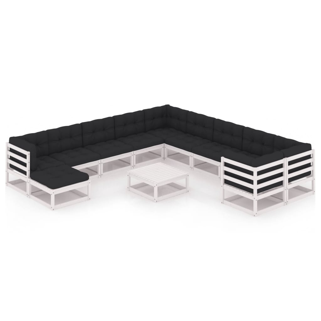 13-tlg. Garten-Lounge-Set mit Kissen Weiss Kiefer Massivholz