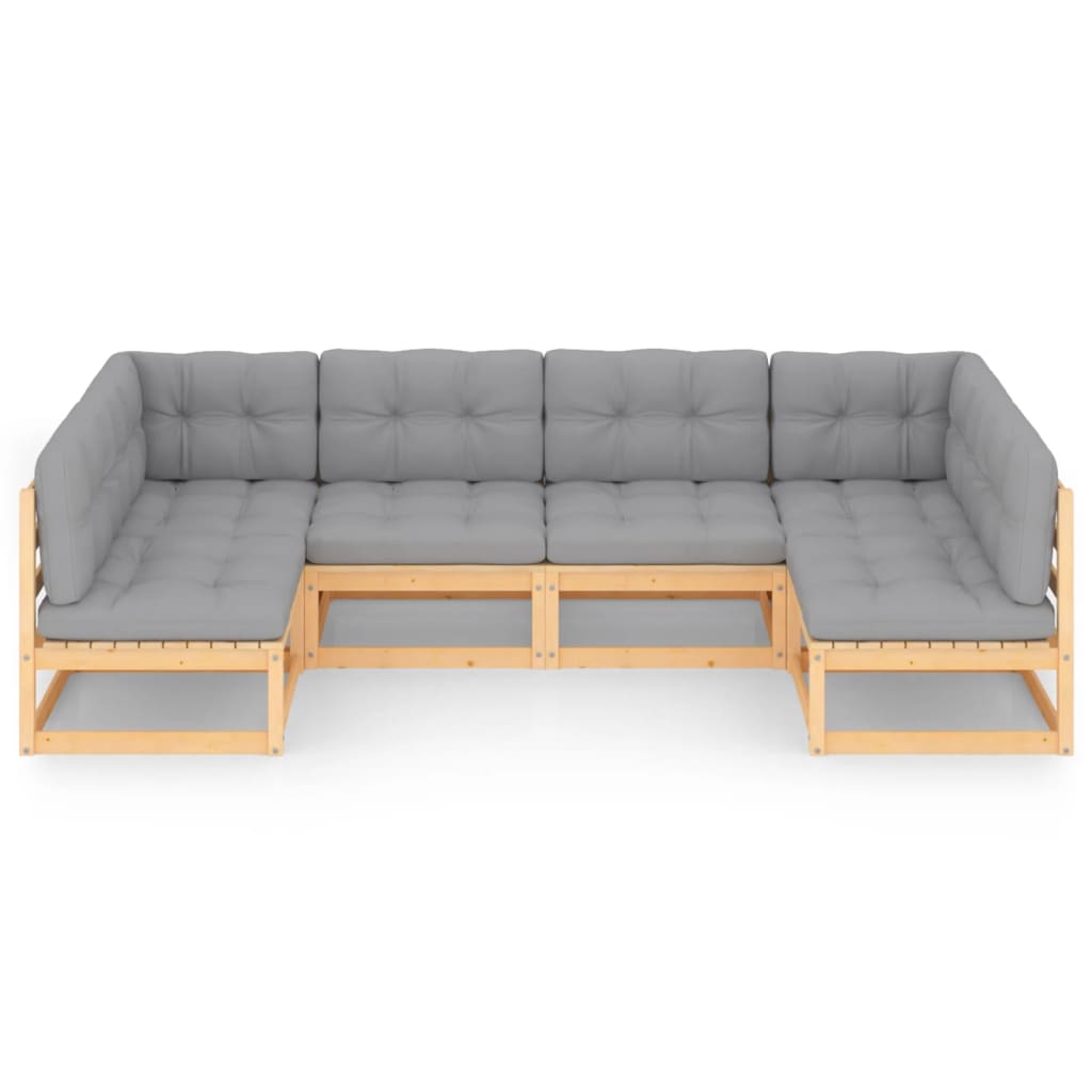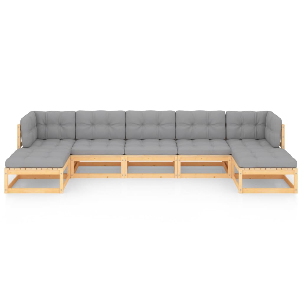 7-tlg. Garten-Lounge-Set mit Kissen Grau Kiefer Massivholz