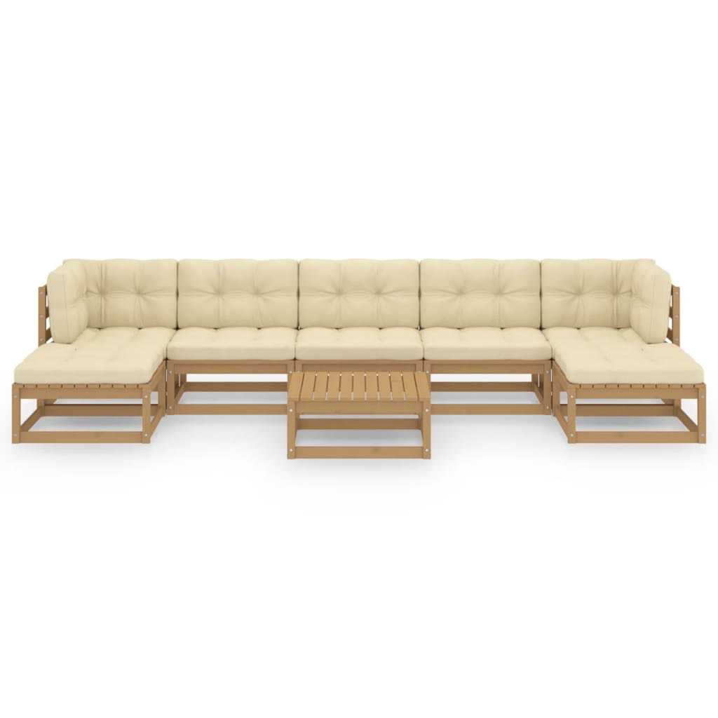 8-tlg. Garten-Lounge-Set Kissen Honigbraun Kiefer Massivholz