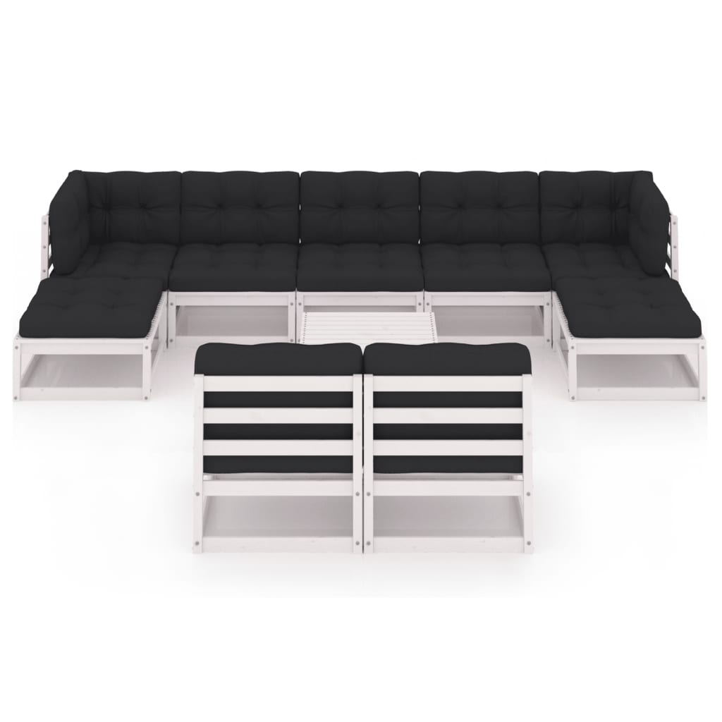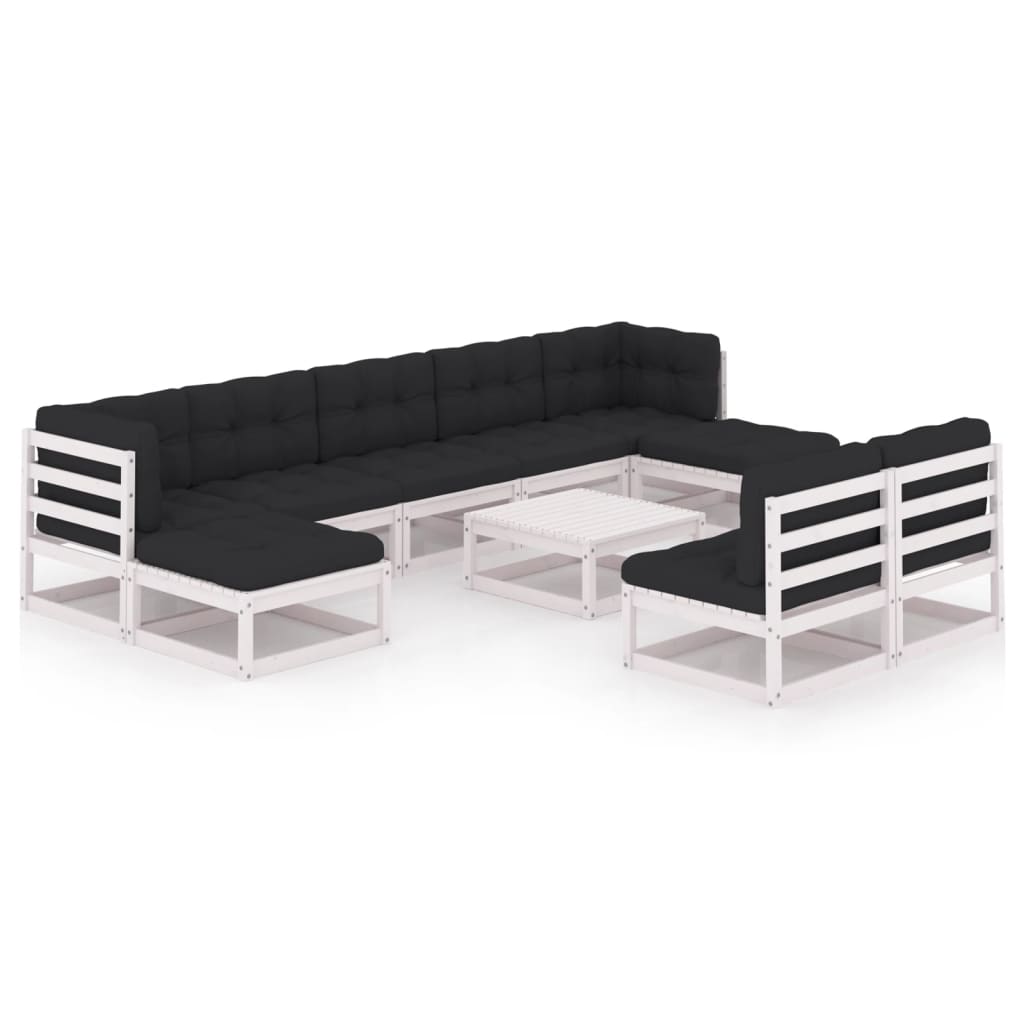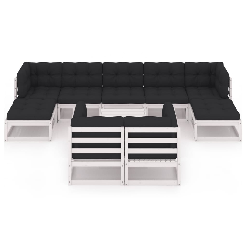 10-tlg. Garten-Lounge-Set mit Kissen Weiss Kiefer Massivholz