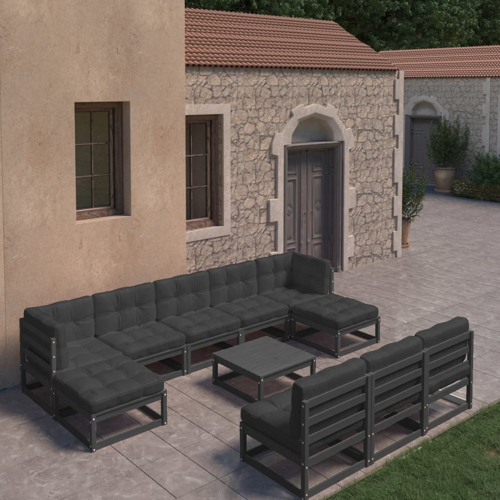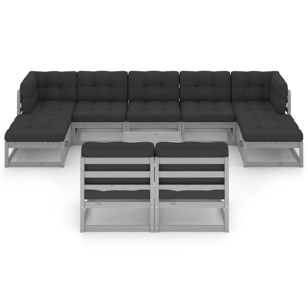 10-tlg. Garten-Lounge-Set mit Kissen Grau Kiefer Massivholz
