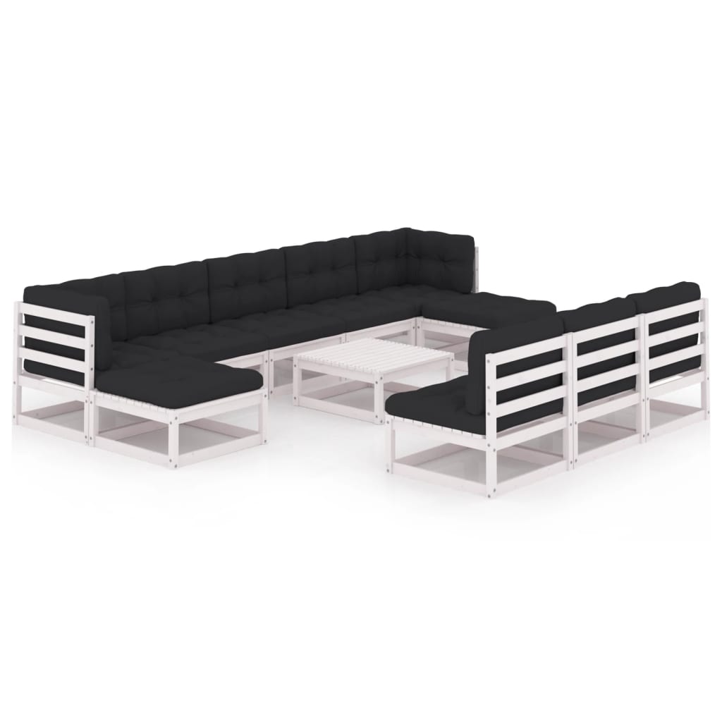 12-tlg. Garten-Lounge-Set mit Kissen Weiss Kiefer Massivholz