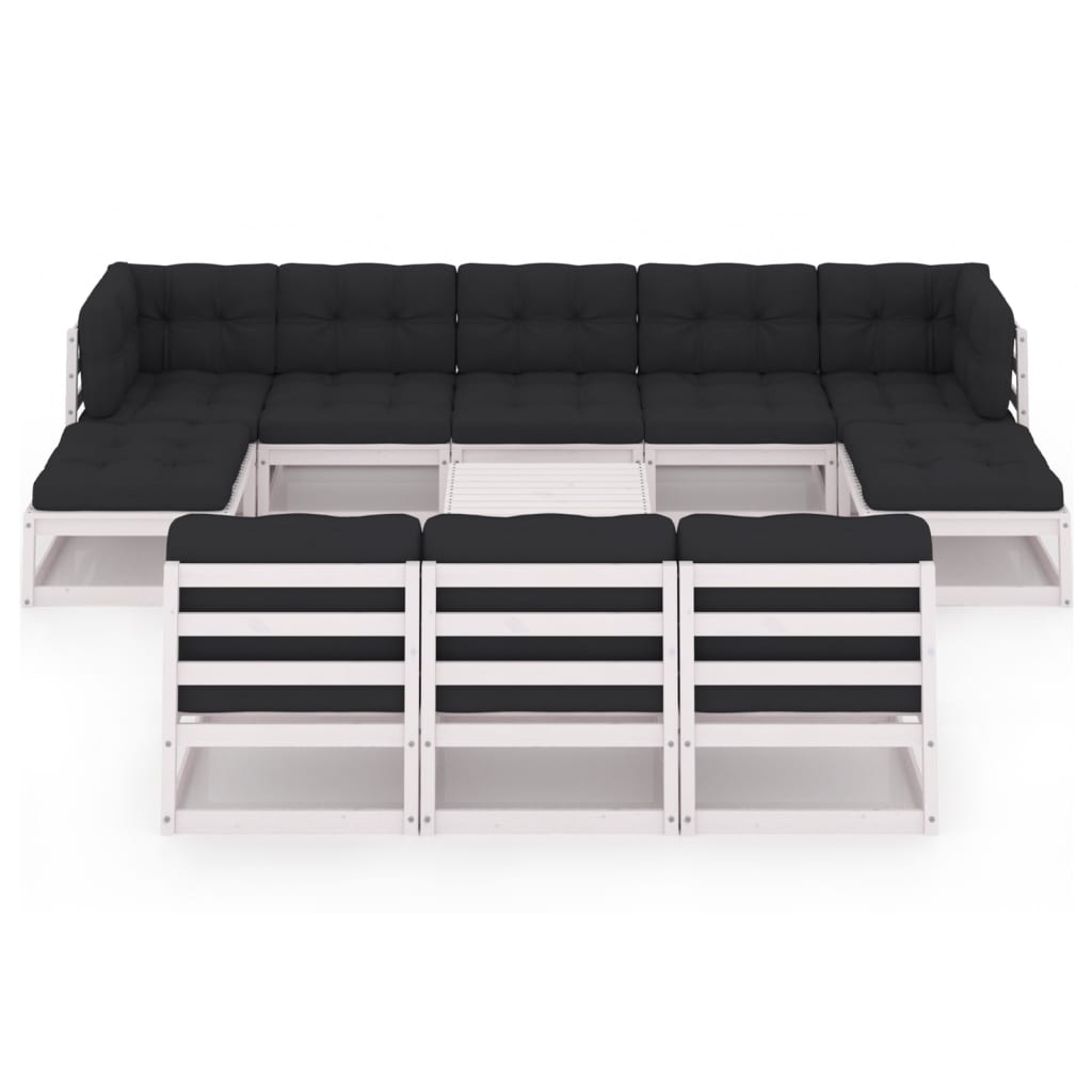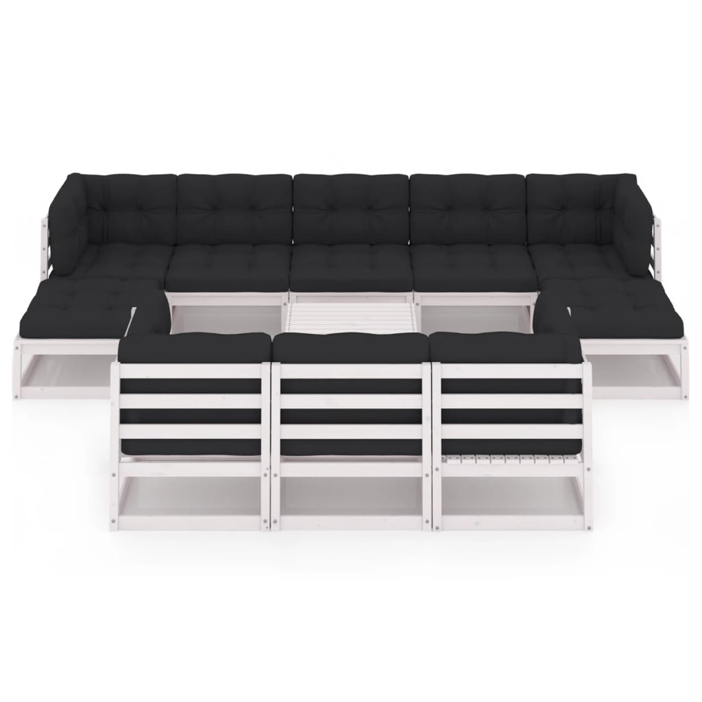 11-tlg. Garten-Lounge-Set mit Kissen Weiss Kiefer Massivholz