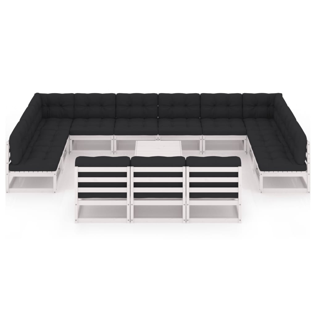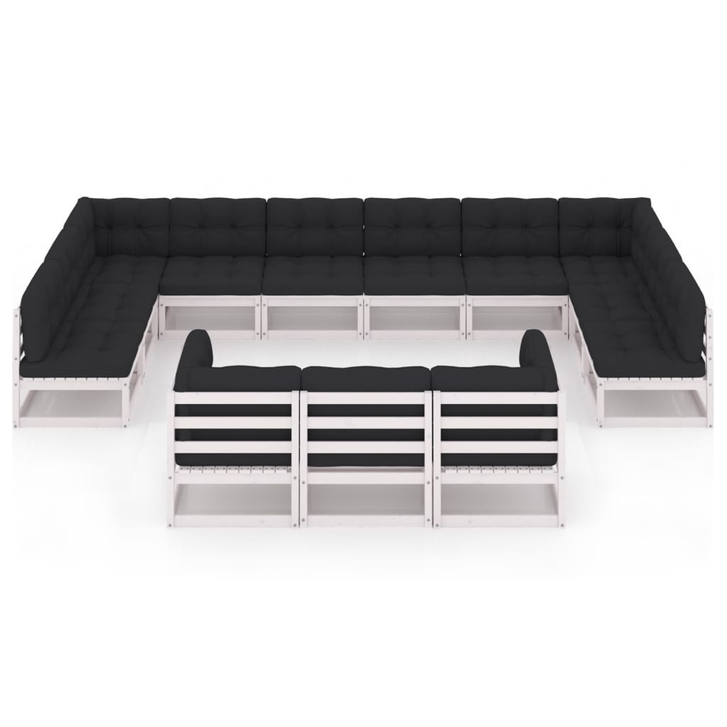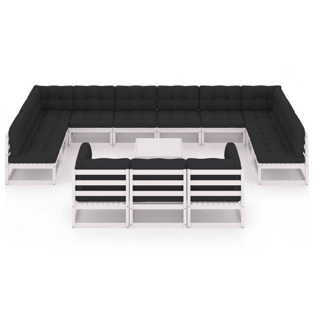 13-tlg. Garten-Lounge-Set mit Kissen Weiss Kiefer Massivholz