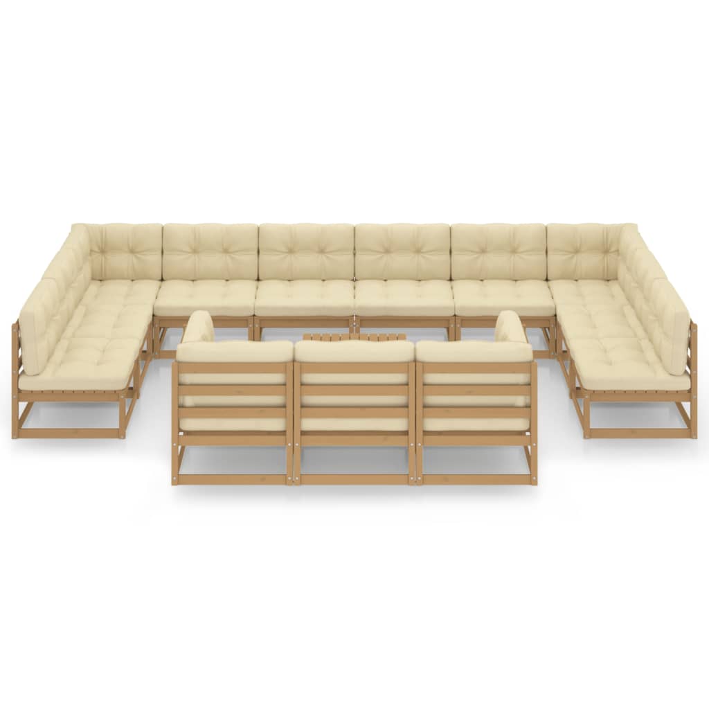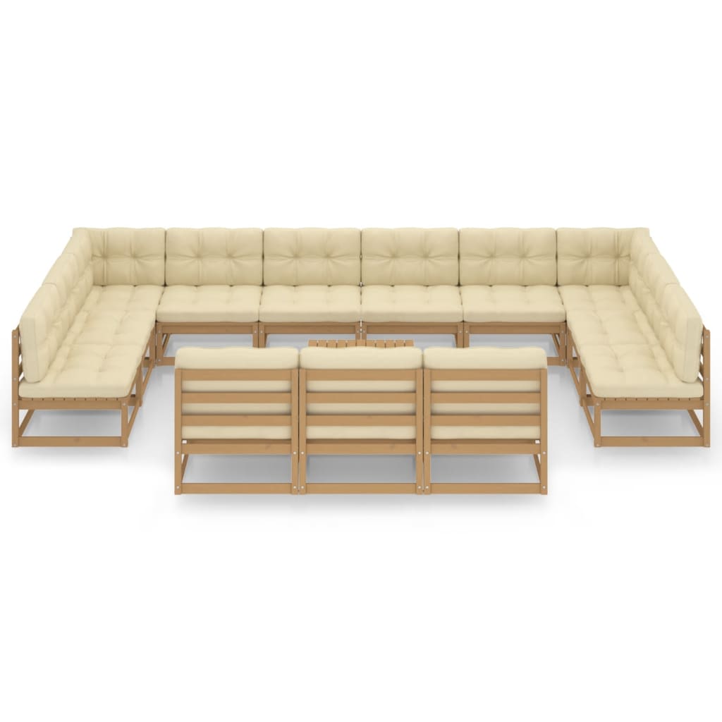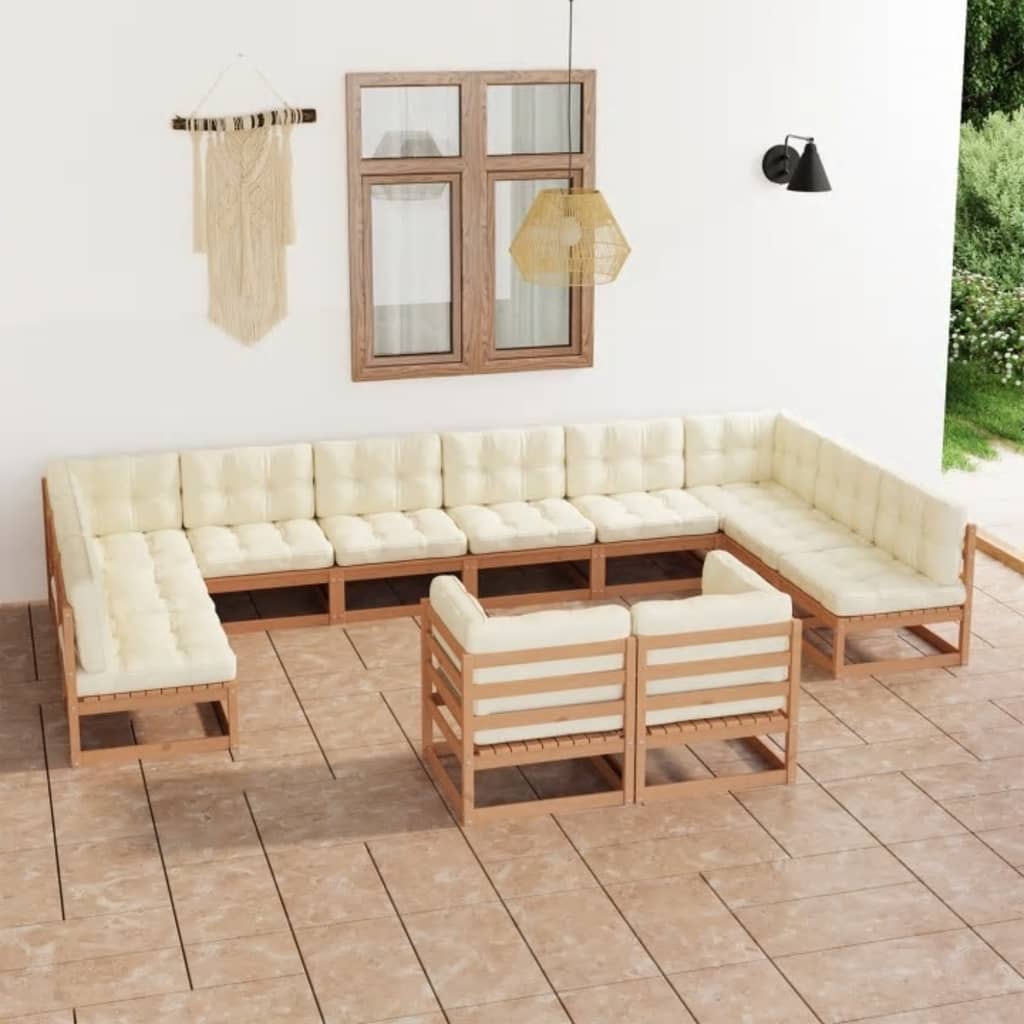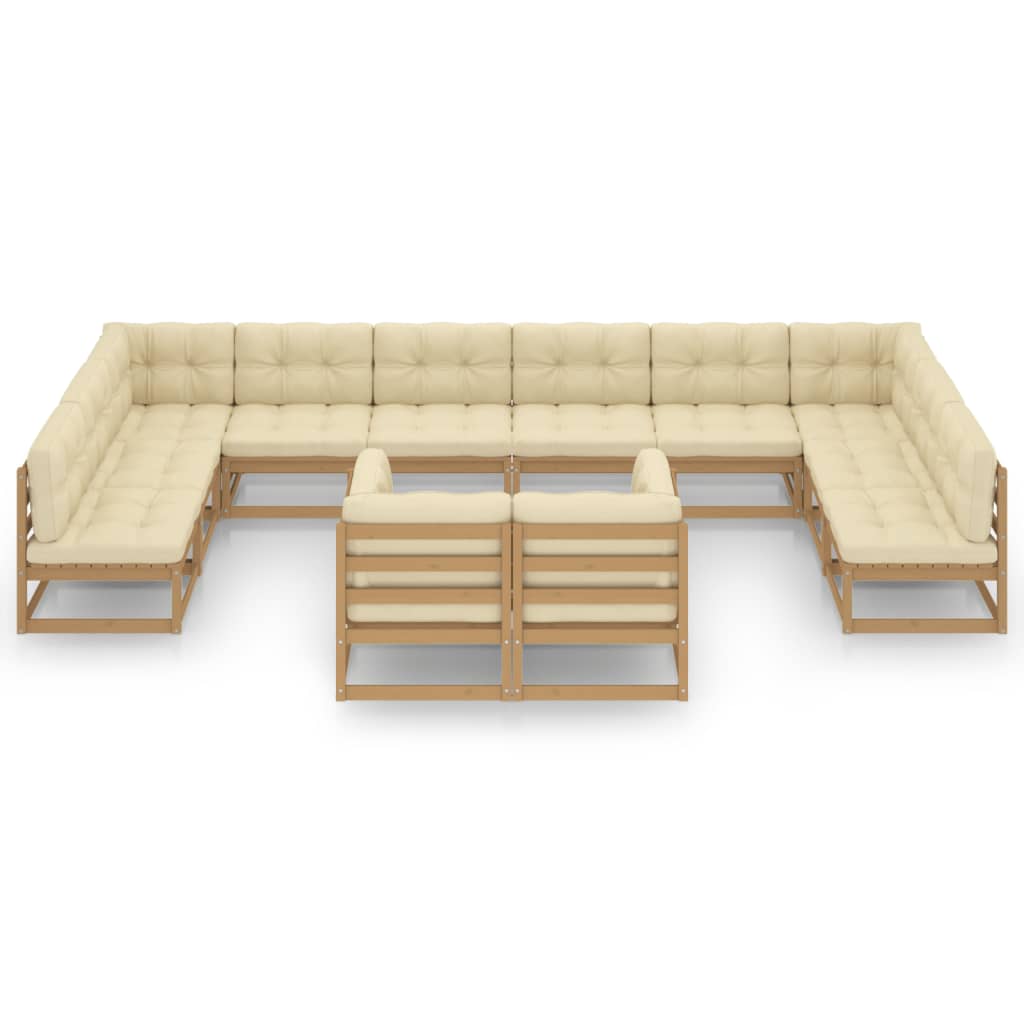 12-tlg. Garten-Lounge-Set Kissen Honigbraun Kiefer Massivholz