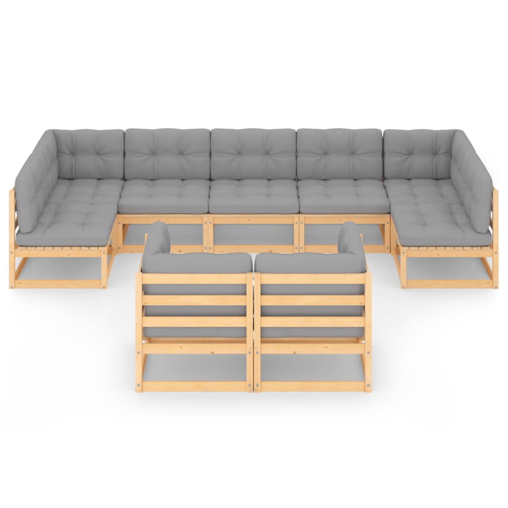 10-tlg. Garten-Lounge-Set mit Kissen Grau Kiefer Massivholz