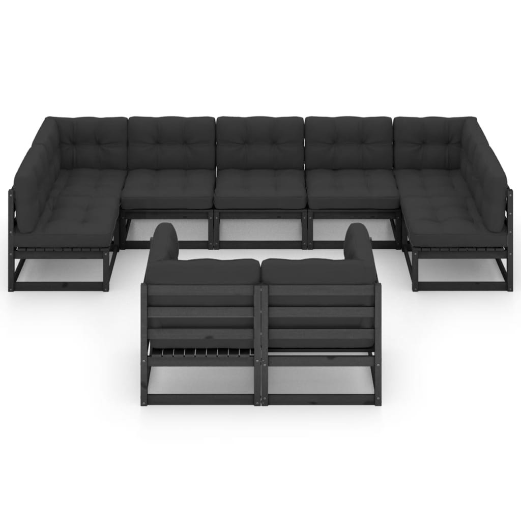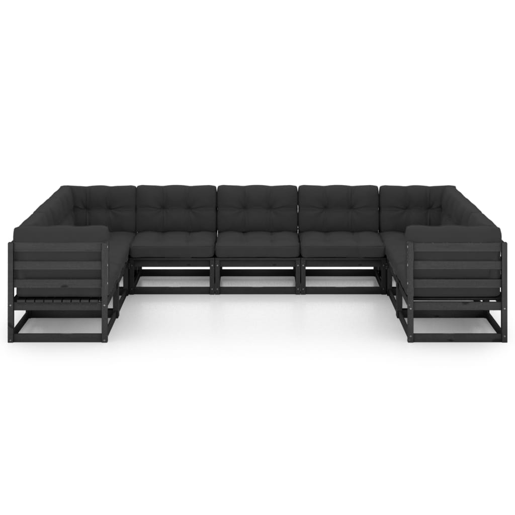 10-tlg. Garten-Lounge-Set mit Kissen Schwarz Kiefer Massivholz