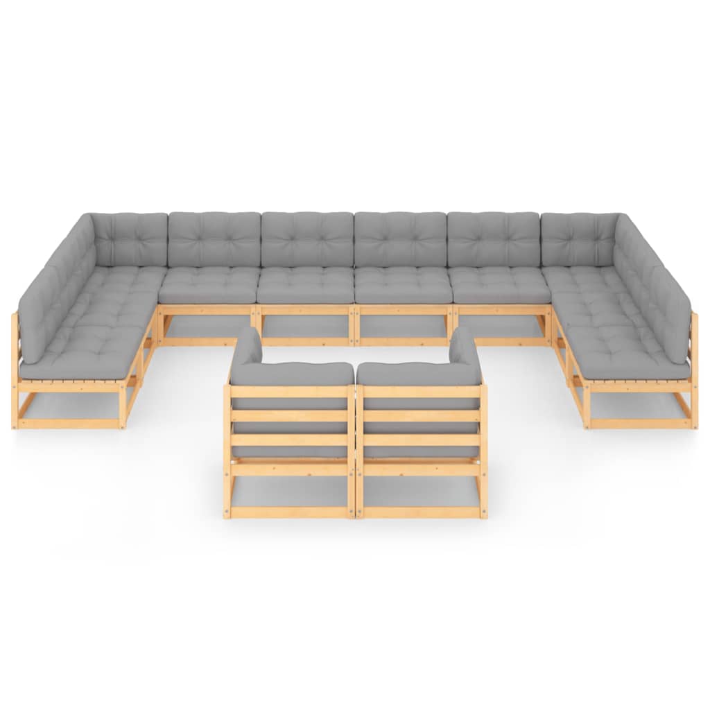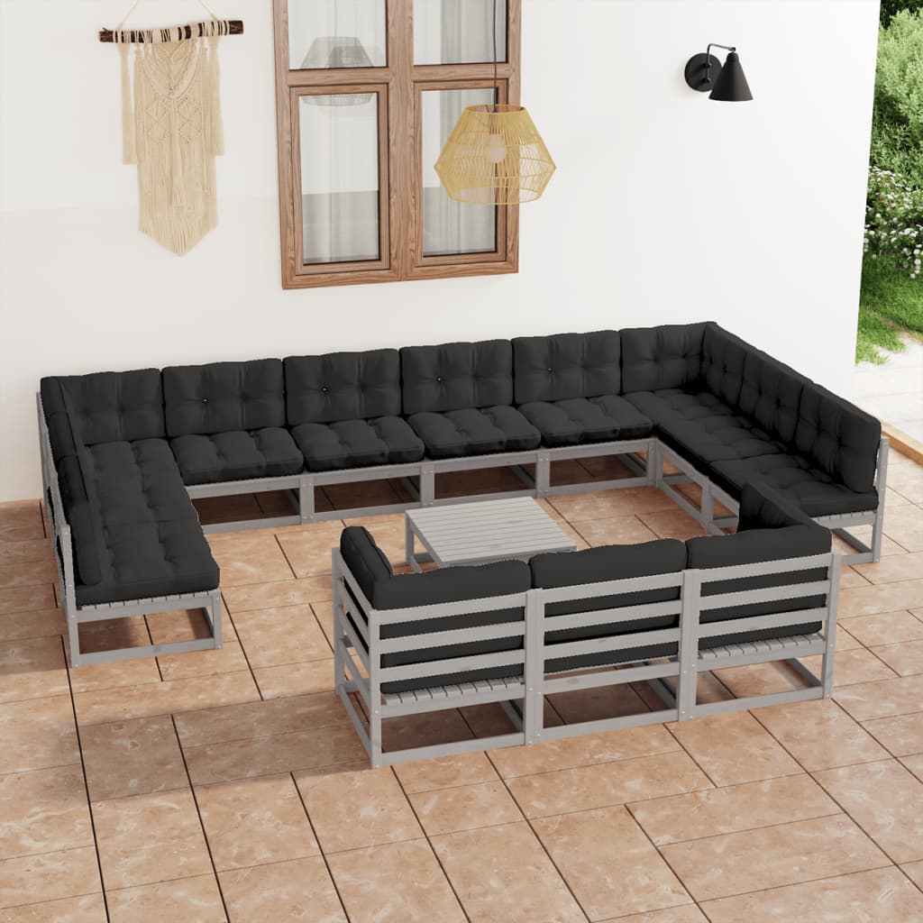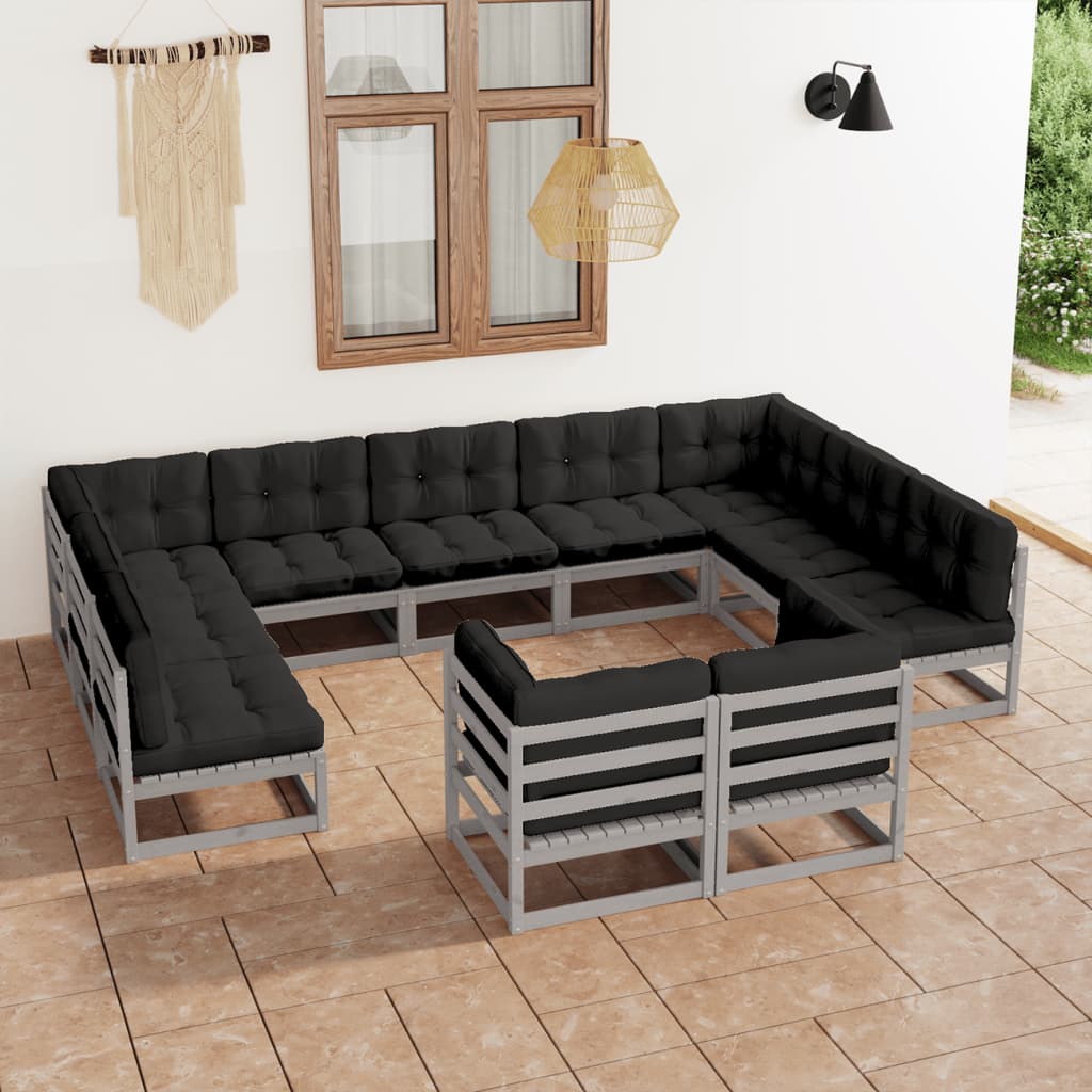13-tlg. Garten-Lounge-Set mit Kissen Grau Kiefer Massivholz