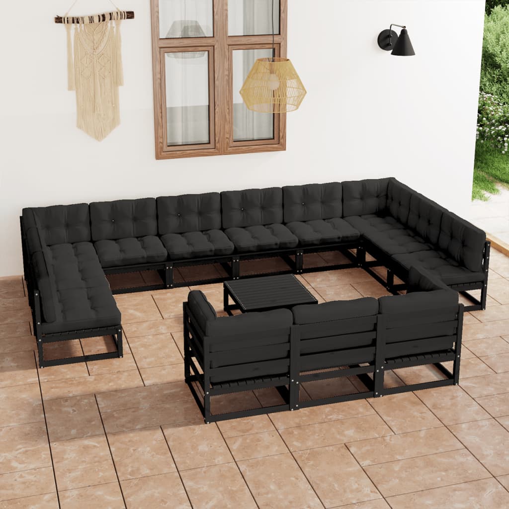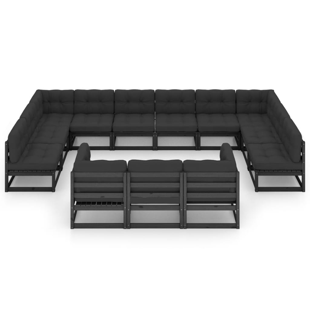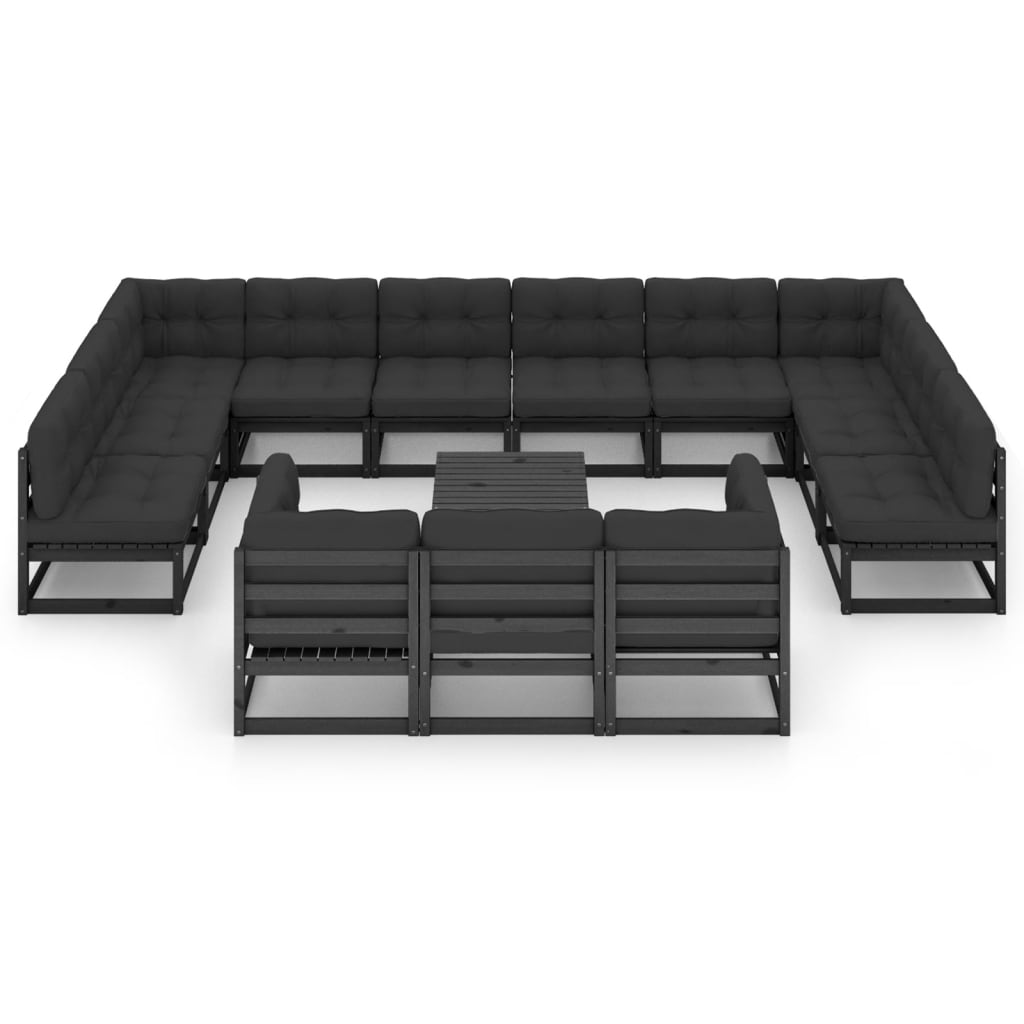 13-tlg. Garten-Lounge-Set mit Kissen Schwarz Massivholz Kiefer
