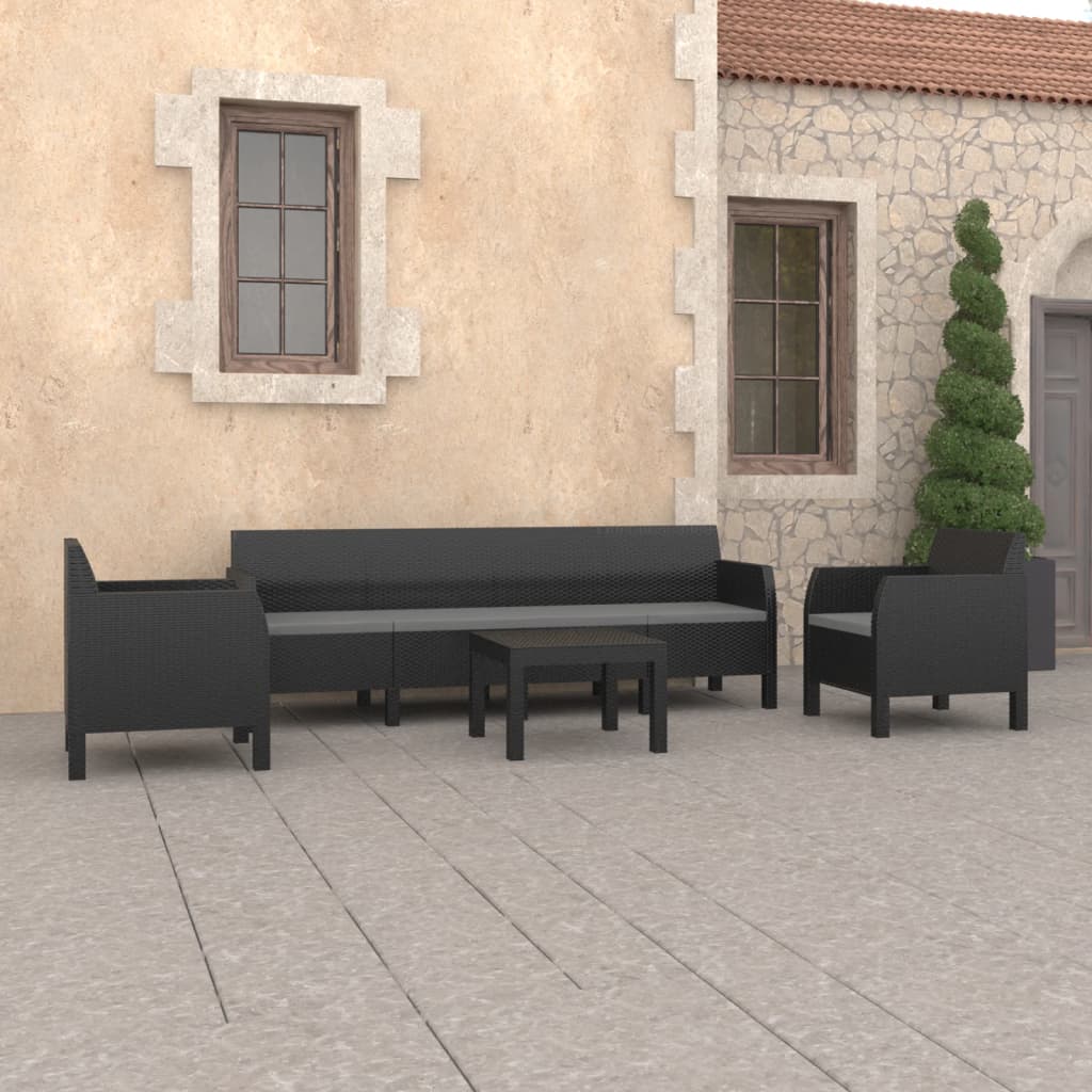 4-tlg. Garten-Lounge-Set mit Kissen PP Rattan Anthrazit