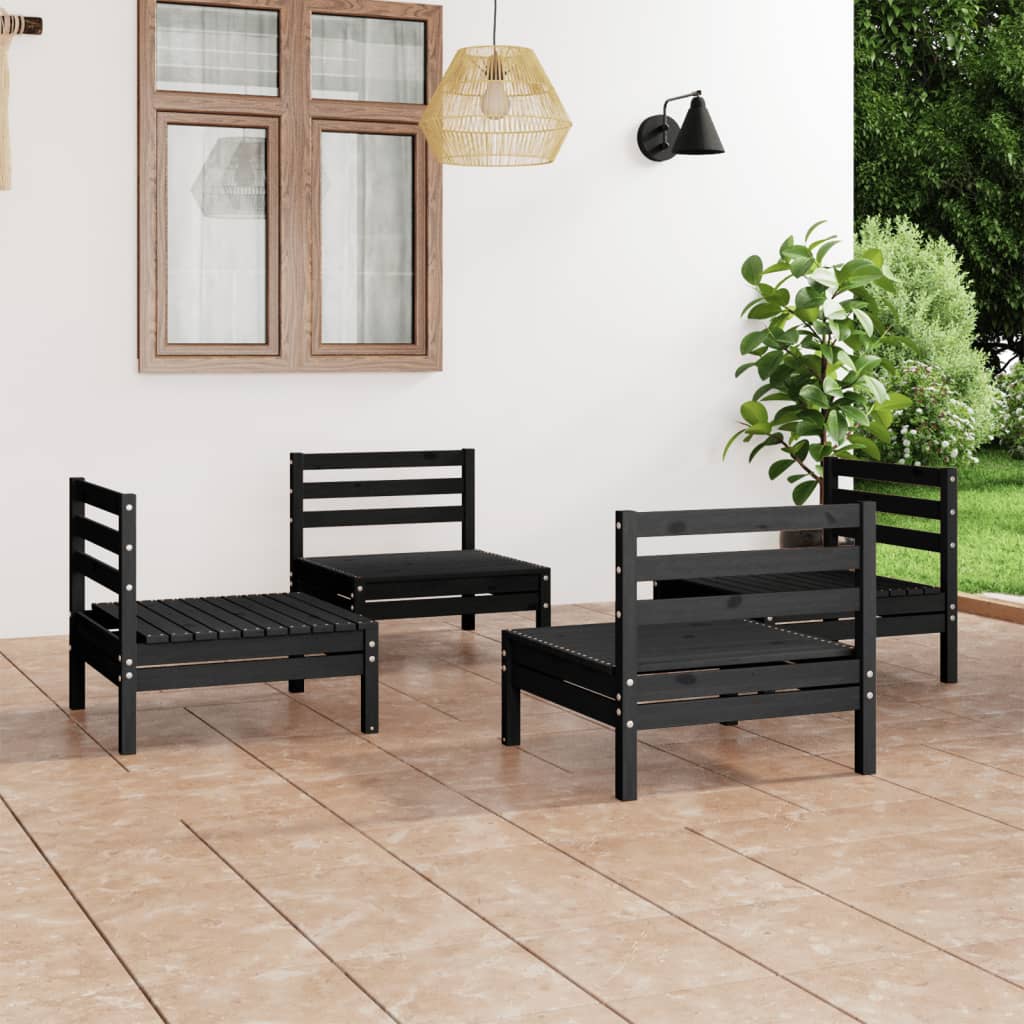 4-tlg. Garten-Lounge-Set Schwarz Massivholz Kiefer