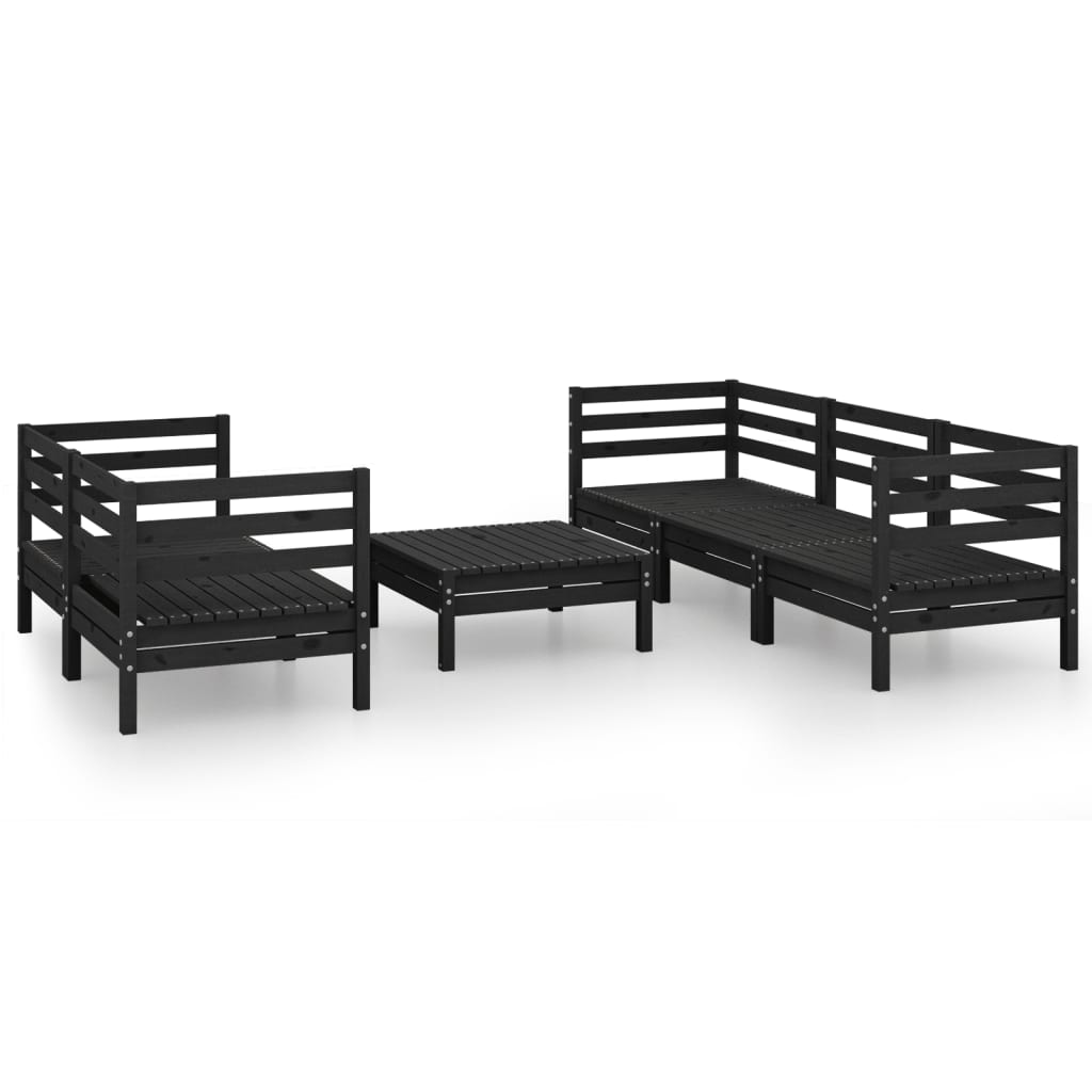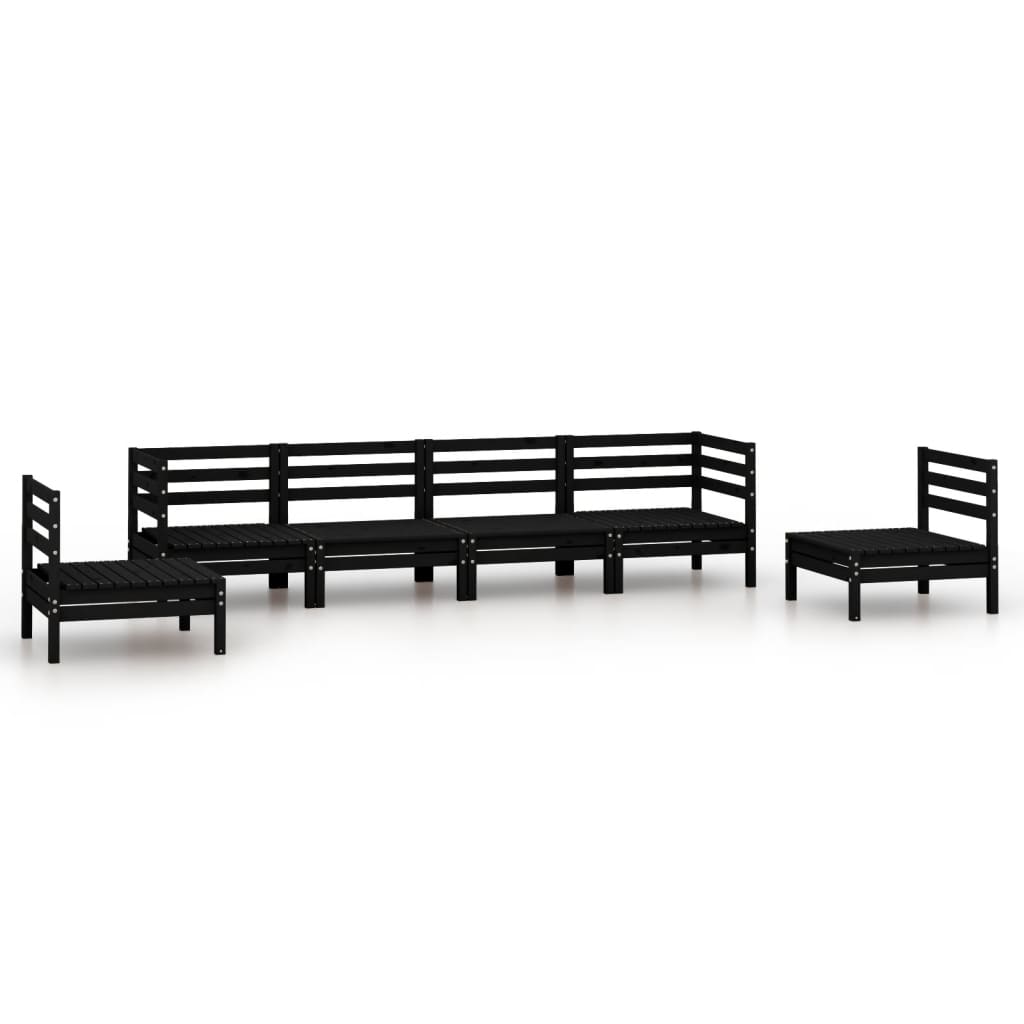 6-tlg. Garten-Lounge-Set Schwarz Massivholz Kiefer