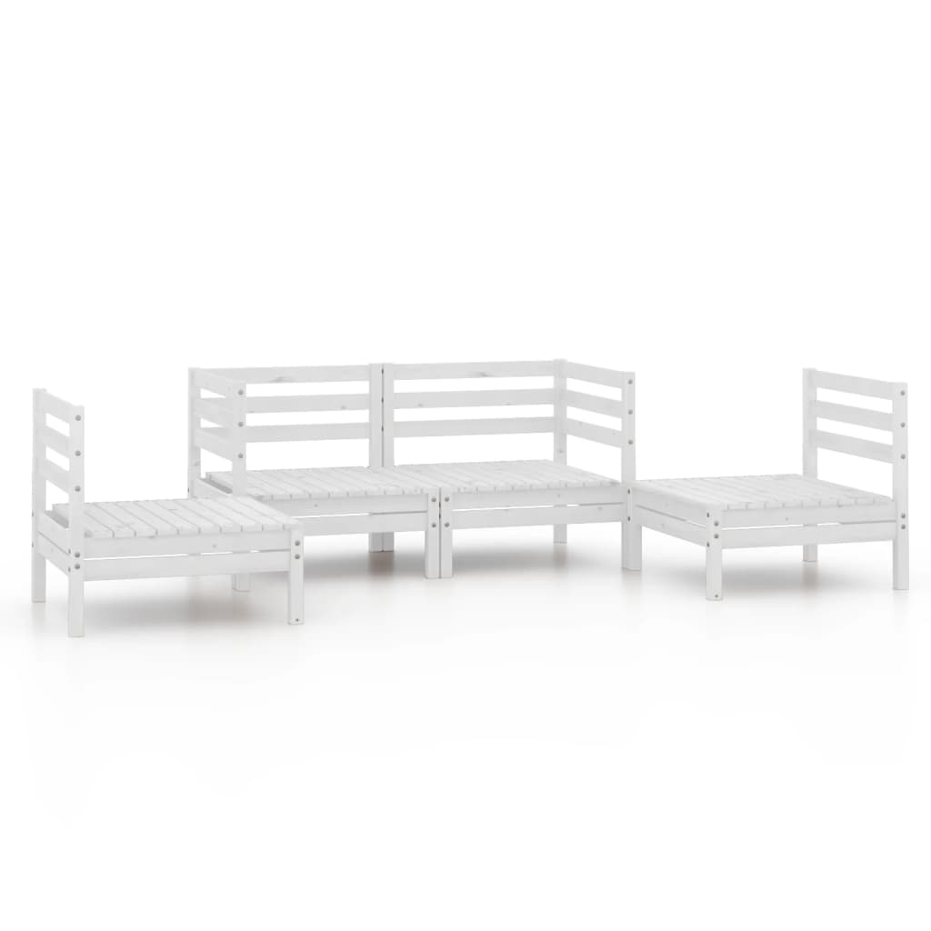 5-tlg. Garten-Lounge-Set Weiss Kiefer Massivholz
