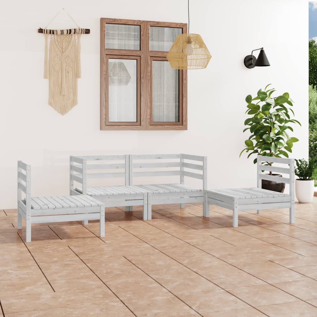 4-tlg. Garten-Lounge-Set Weiss Kiefer Massivholz