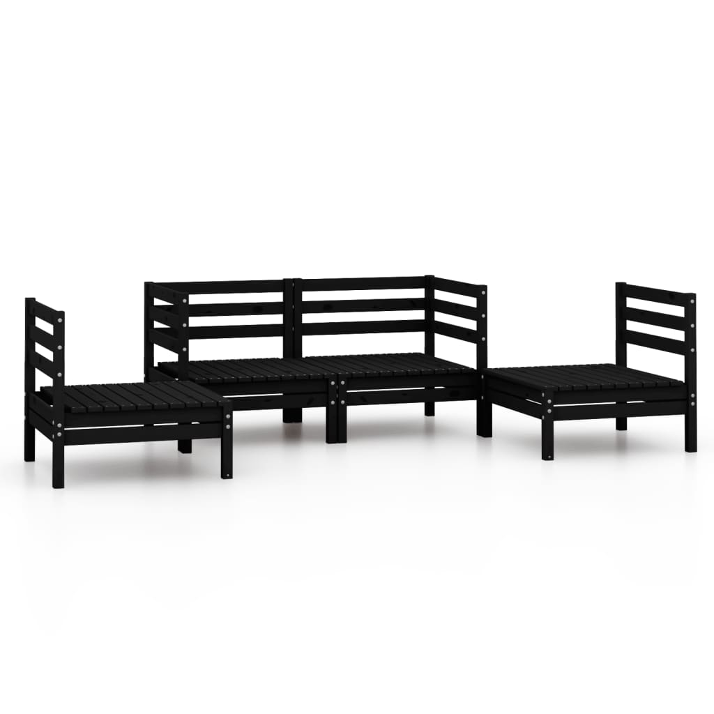 5-tlg. Garten-Lounge-Set Schwarz Massivholz Kiefer