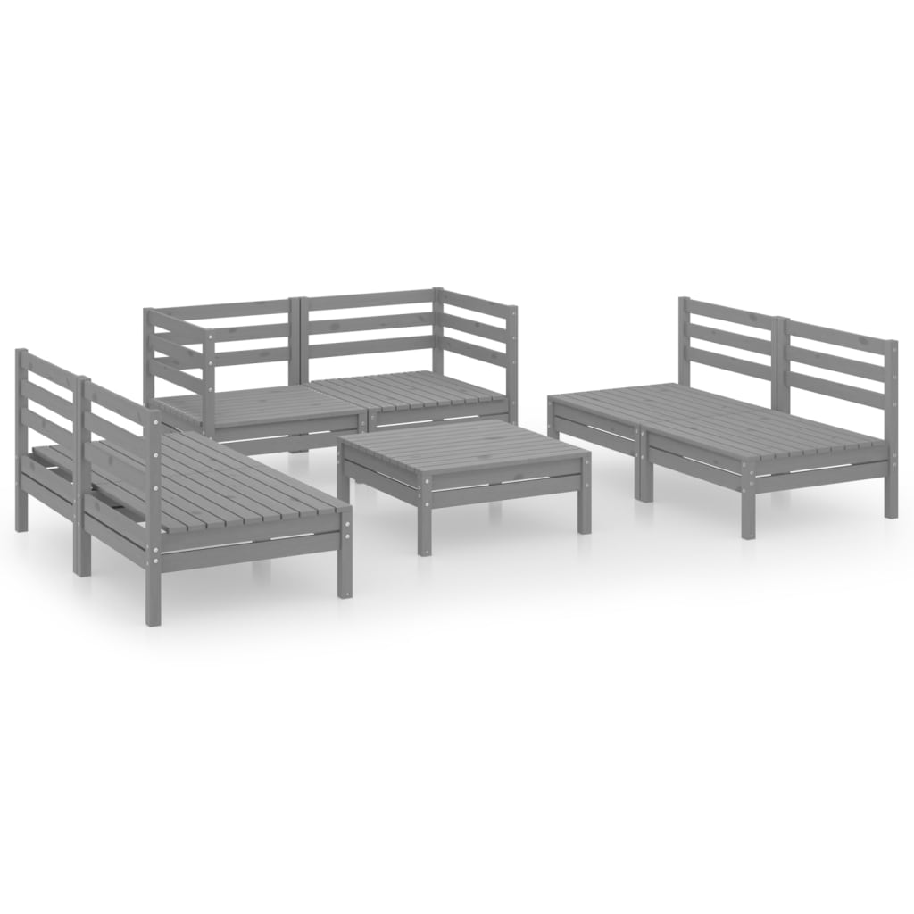 6-tlg. Garten-Lounge-Set Grau Kiefer Massivholz