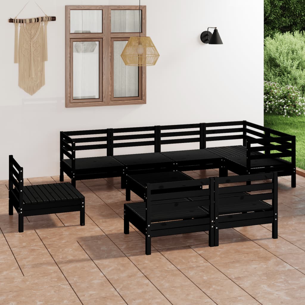 9-tlg. Garten-Lounge-Set Massivholz Kiefer Schwarz