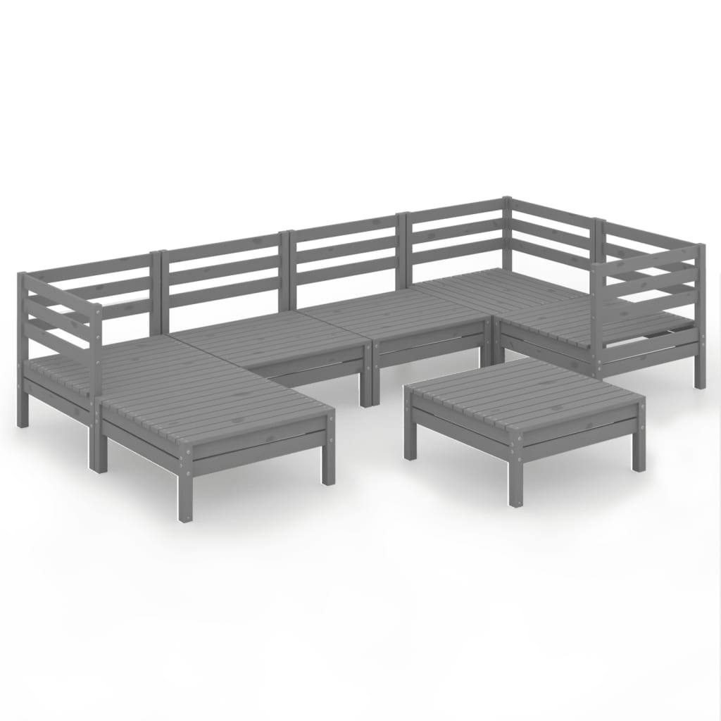 7-tlg. Garten-Lounge-Set Massivholz Kiefer Grau