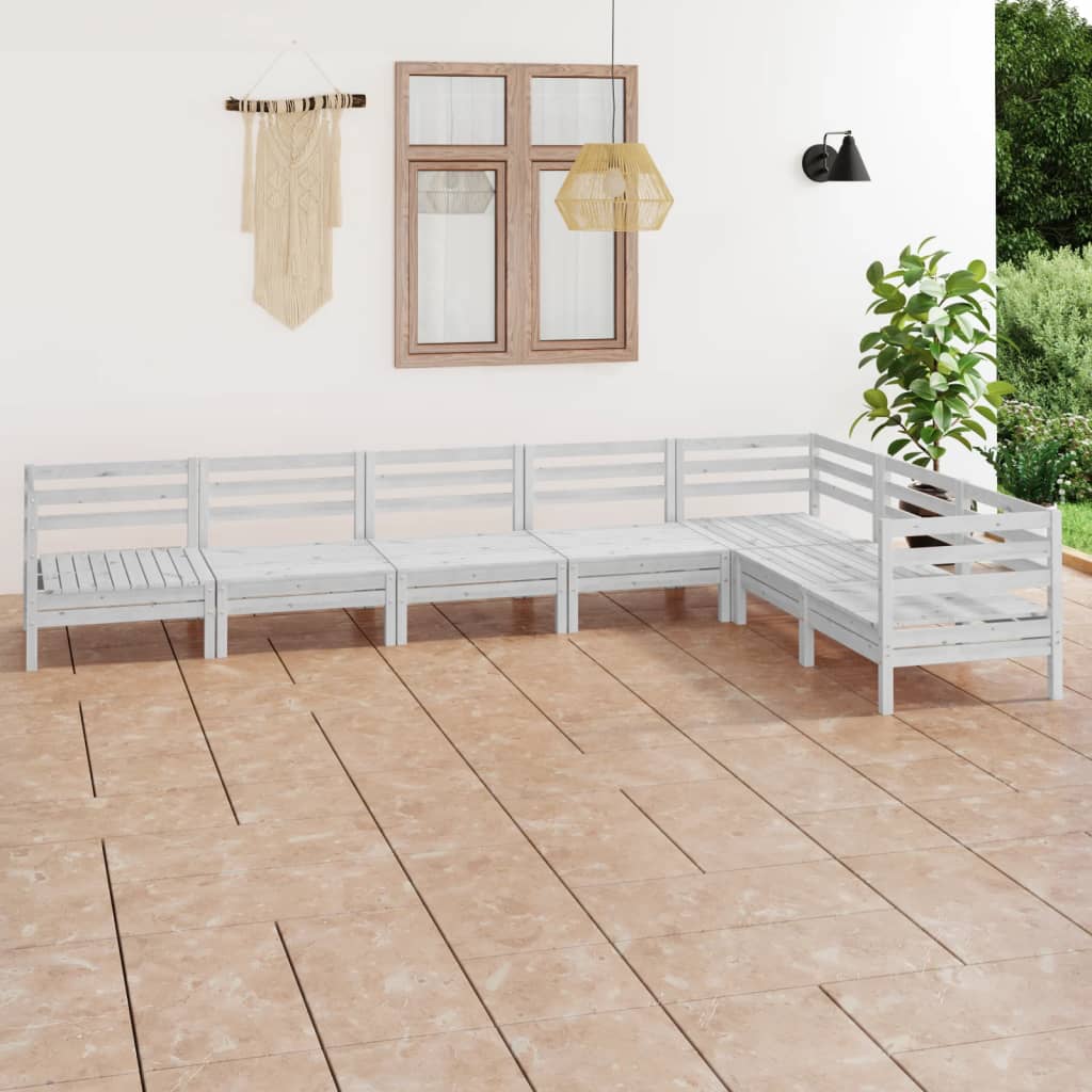 8-tlg. Garten-Lounge-Set Massivholz Kiefer Weiss