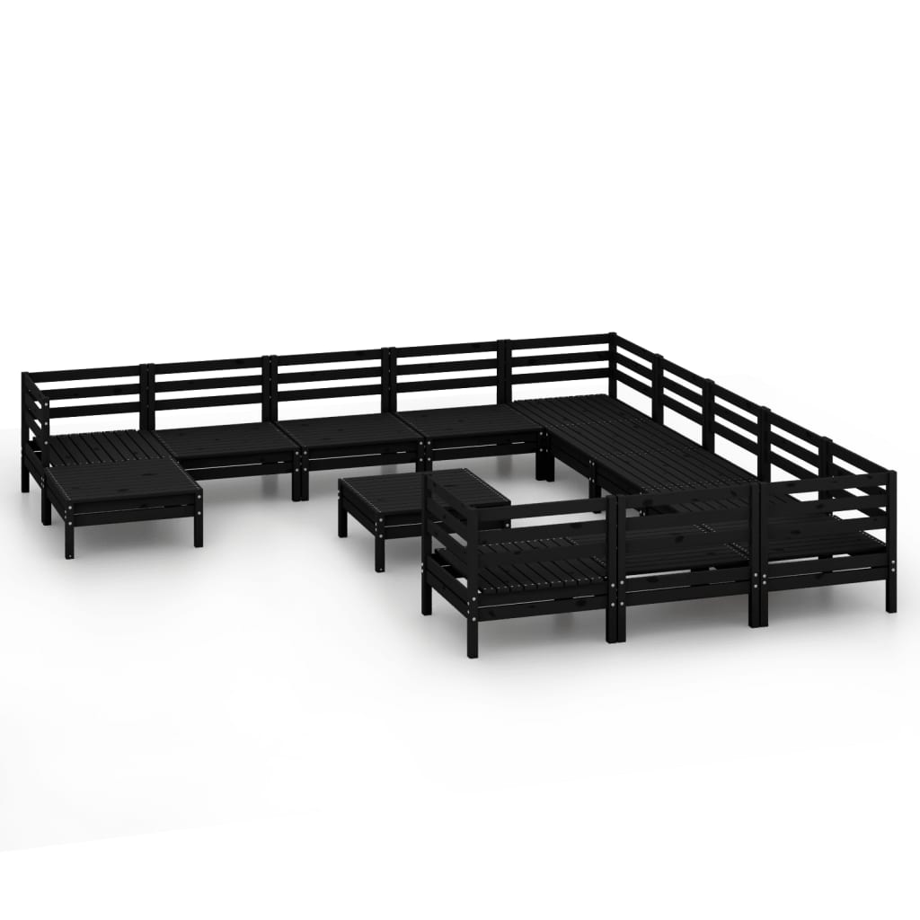 13-tlg. Garten-Lounge-Set Schwarz Massivholz Kiefer