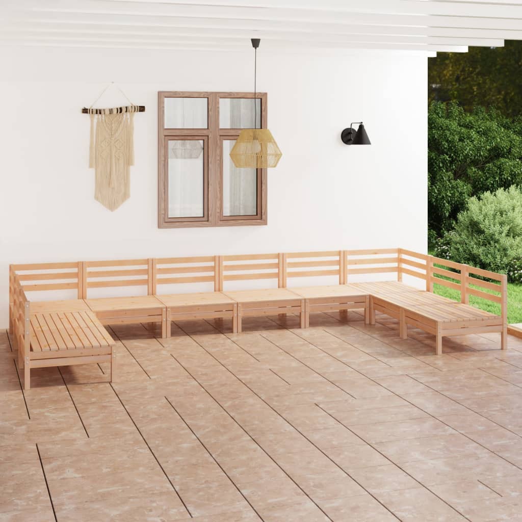 10-tlg. Garten-Lounge-Set Kiefer Massivholz
