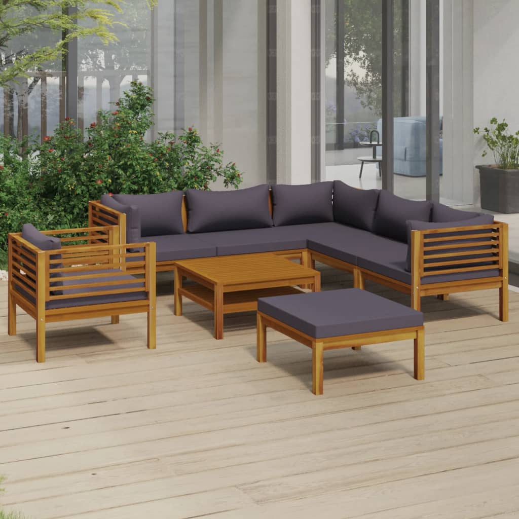 9-tlg. Garten-Lounge-Set mit Auflage Massivholz Akazie