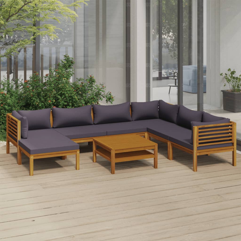 9-tlg. Garten-Lounge-Set mit Kissen Massivholz Akazie