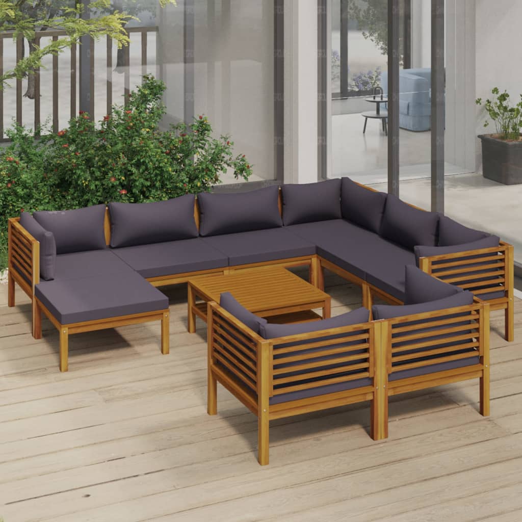 12-tlg. Garten-Lounge-Set mit Auflage Massivholz Akazie
