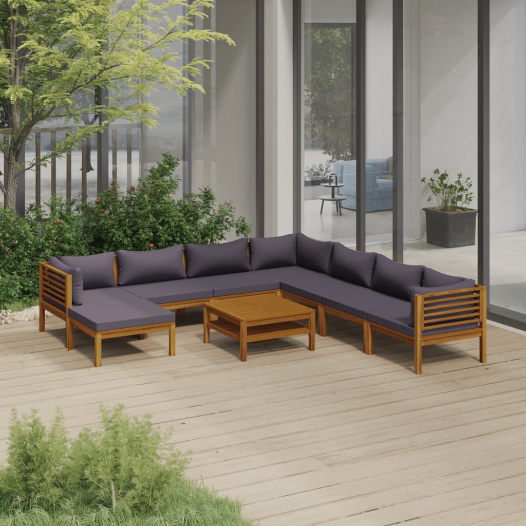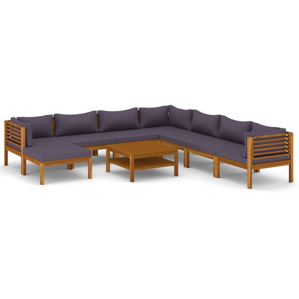 10-tlg. Garten-Lounge-Set mit Auflage Massivholz Akazie