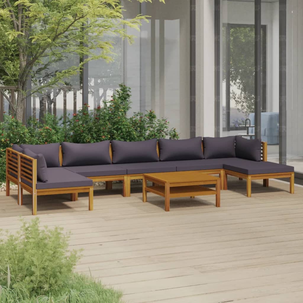 8-tlg. Garten-Lounge-Set mit Auflage Massivholz Akazie