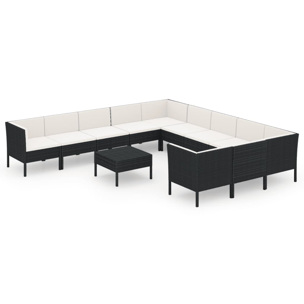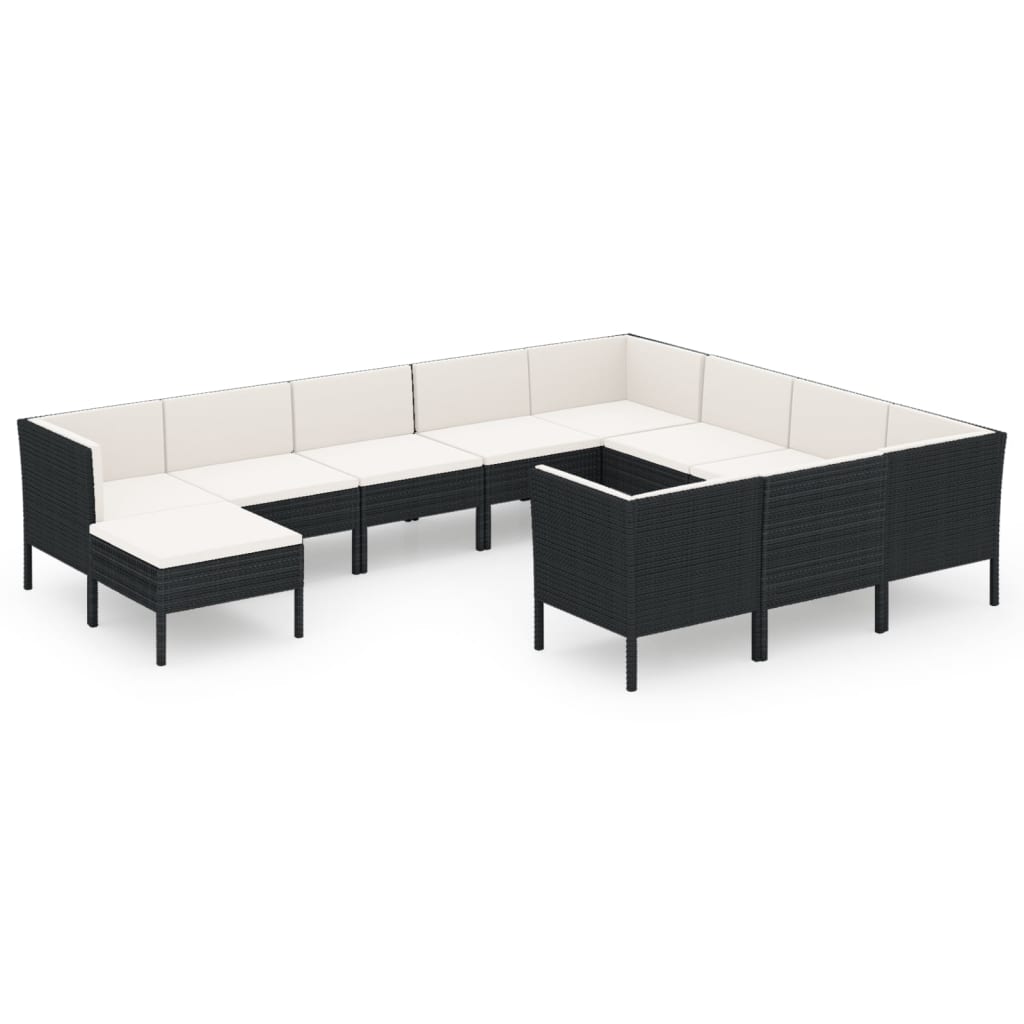 12-tlg. Garten-Lounge-Set mit Auflagen Poly Rattan Schwarz