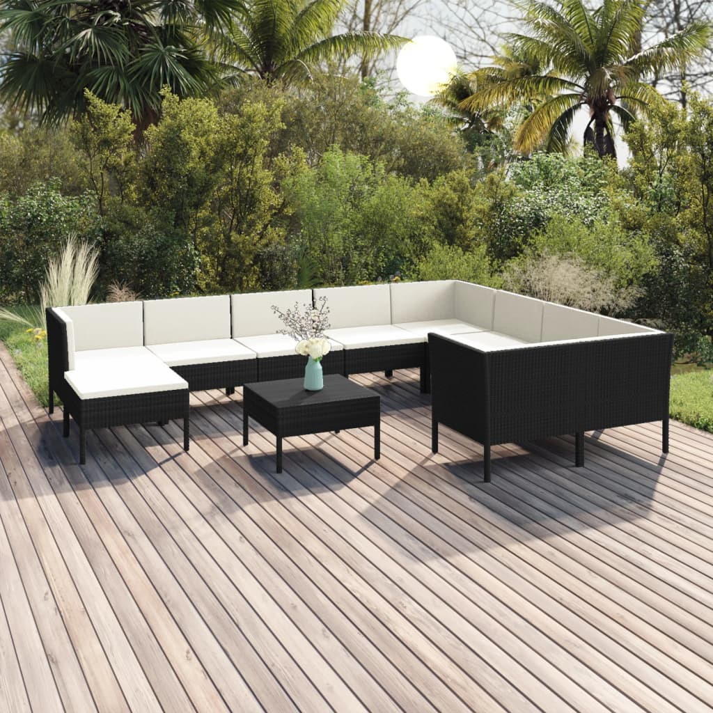 11-tlg. Garten-Lounge-Set mit Auflagen Poly Rattan Schwarz
