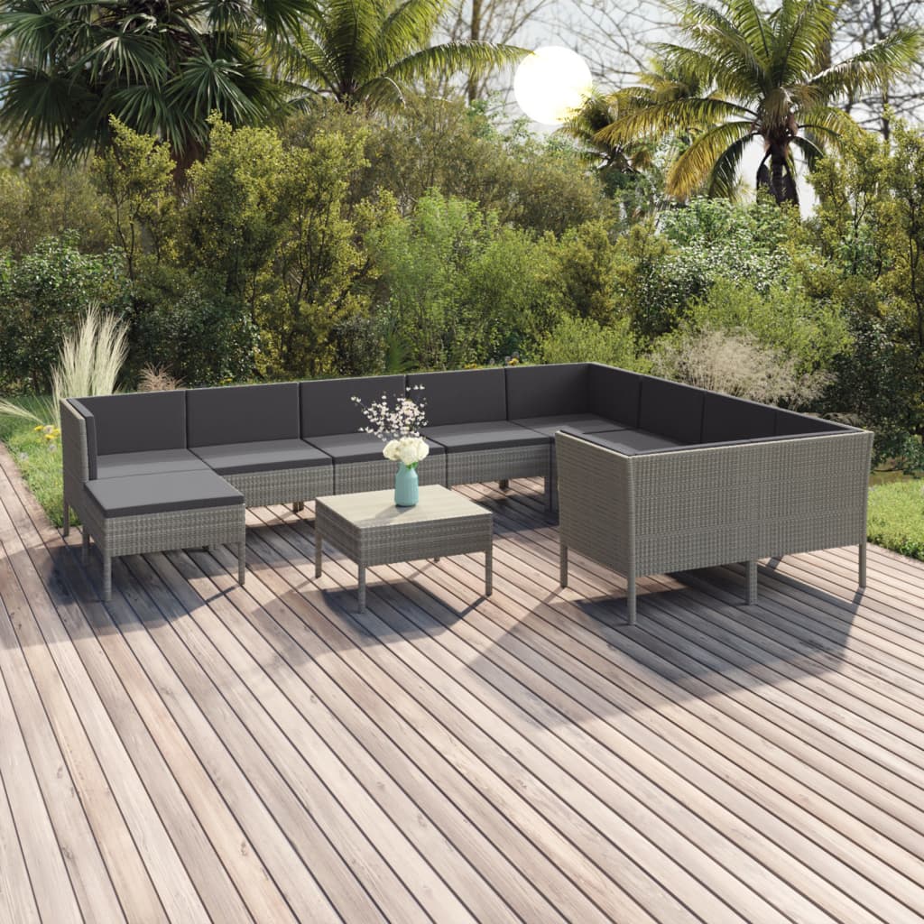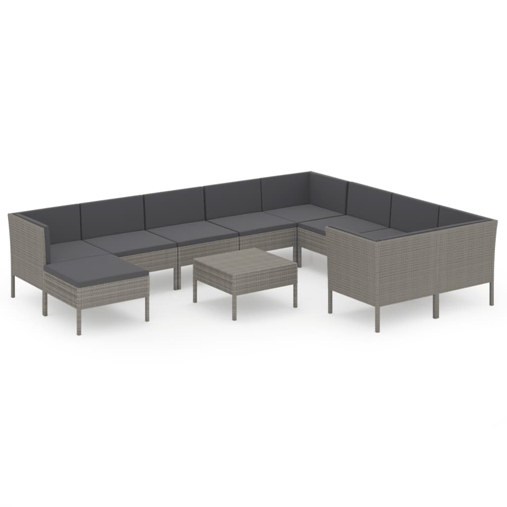 12-tlg. Garten-Lounge-Set mit Auflagen Poly Rattan Grau