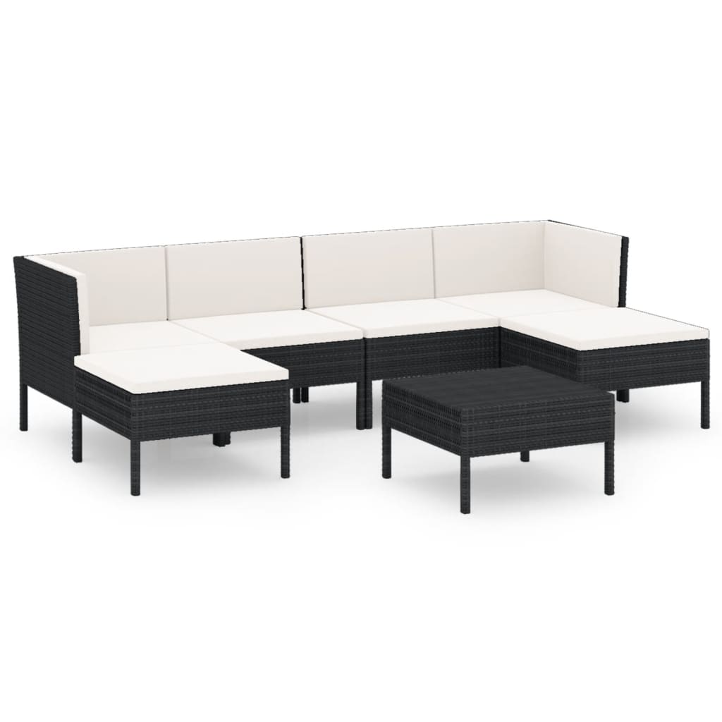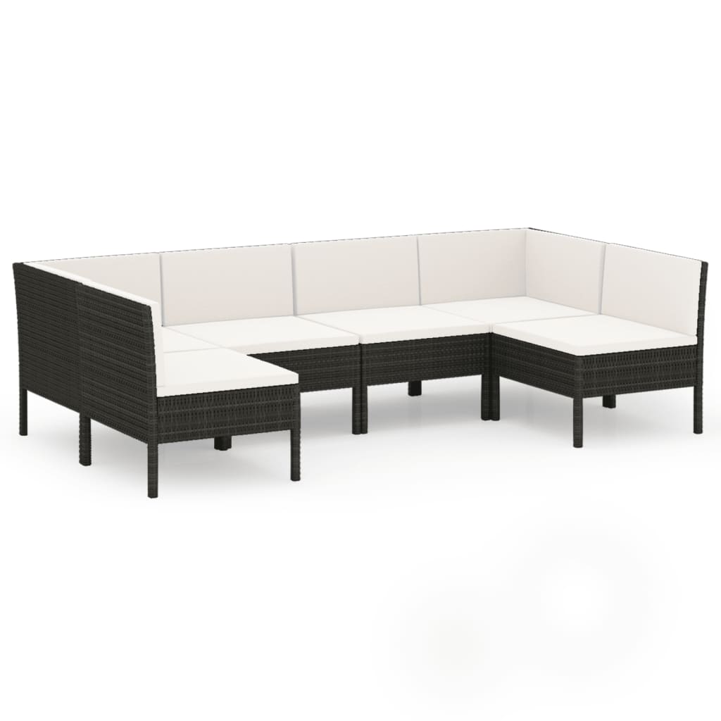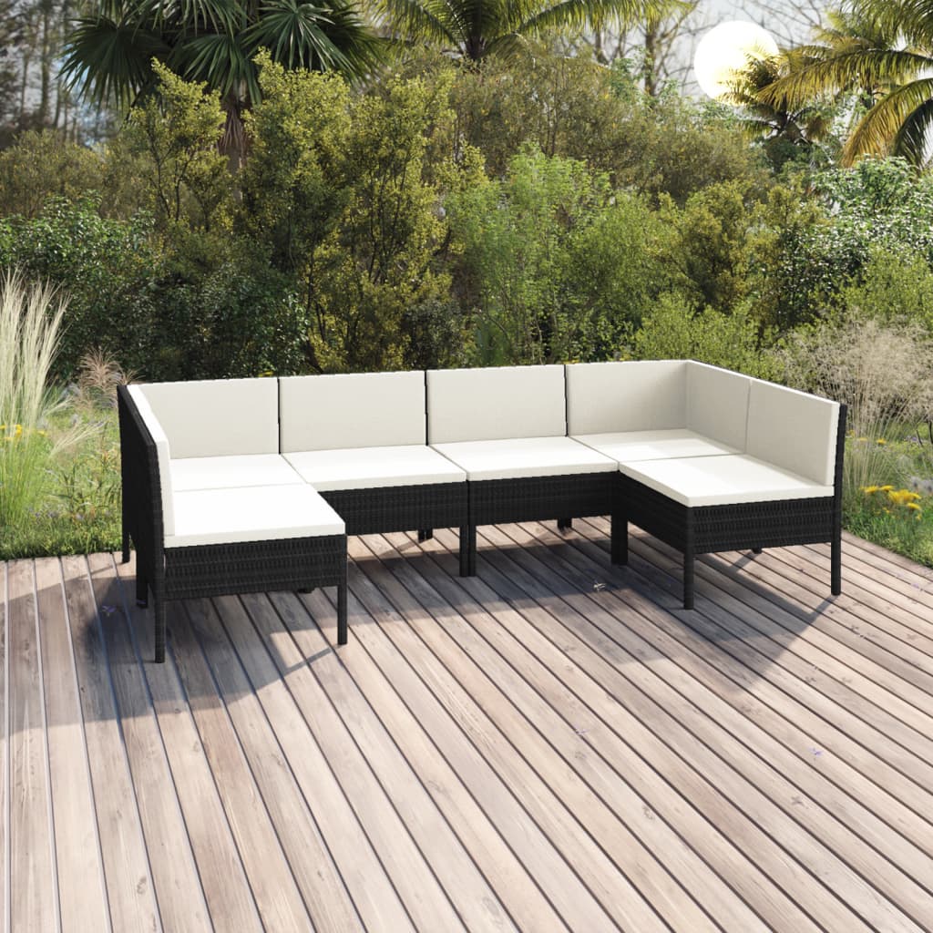 6-tlg. Garten-Lounge-Set mit Auflagen Poly Rattan Schwarz