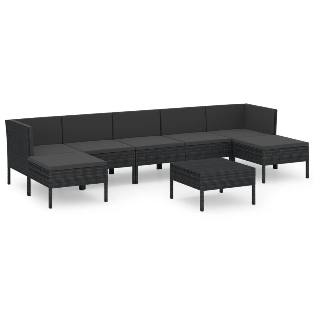 7-tlg. Garten-Lounge-Set mit Auflagen Poly Rattan Schwarz