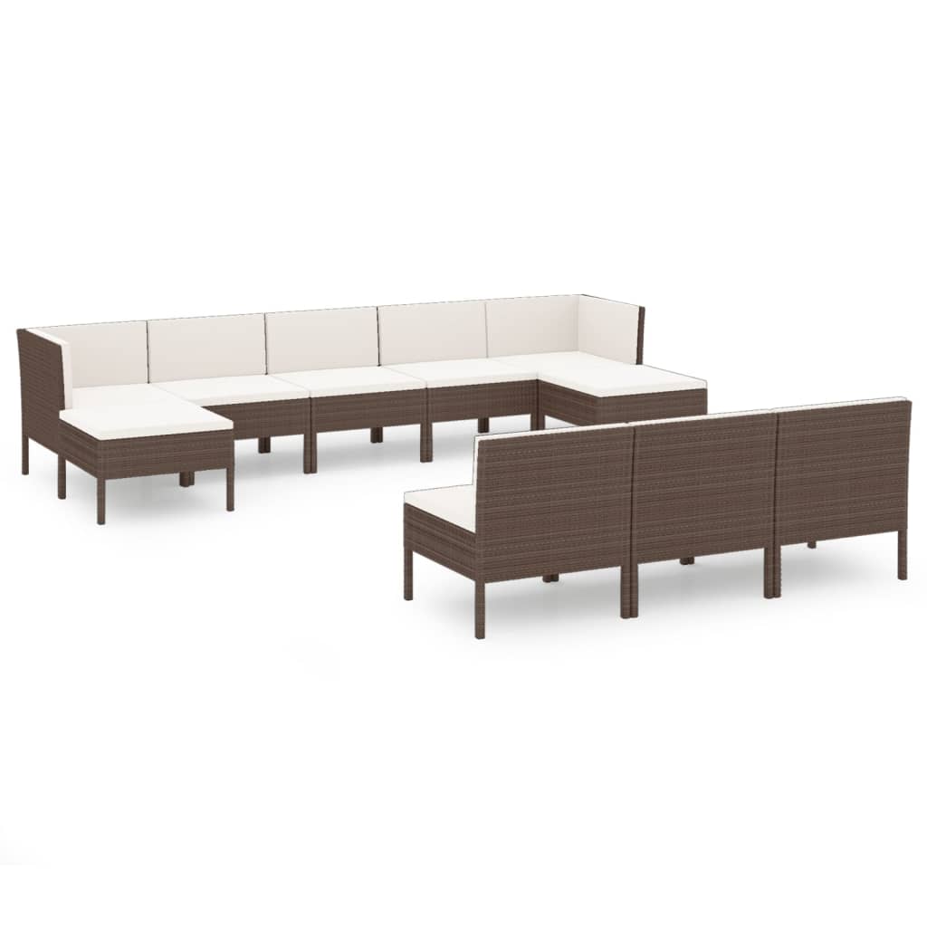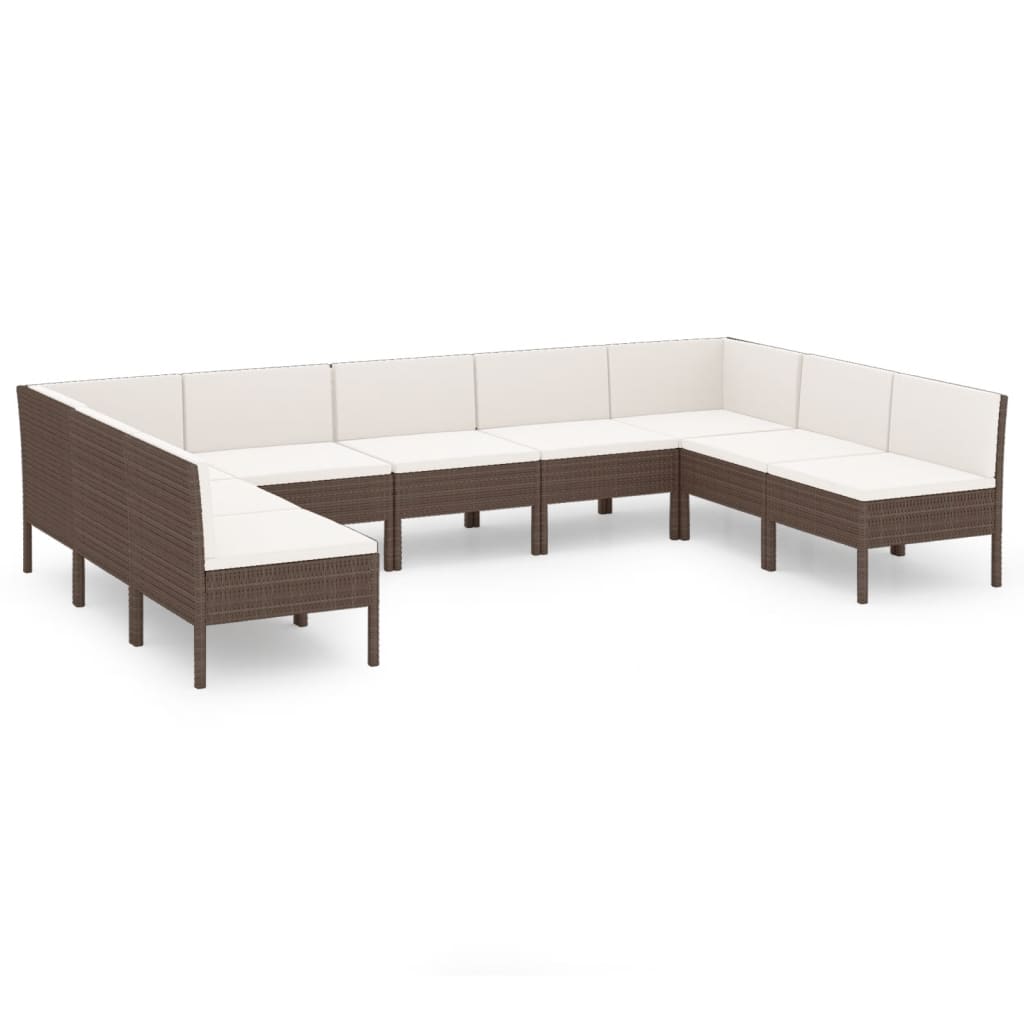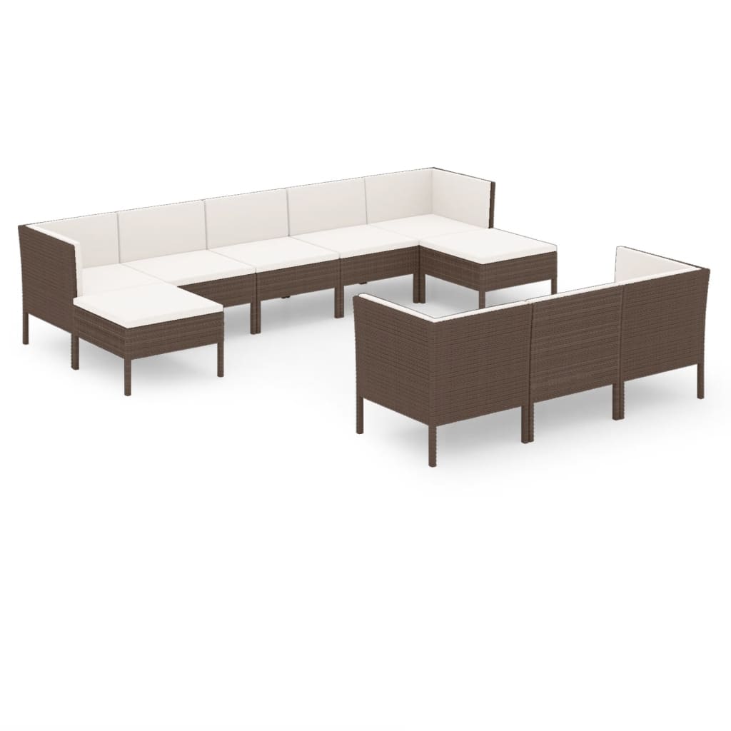 10-tlg. Garten-Lounge-Set mit Auflagen Poly Rattan Braun