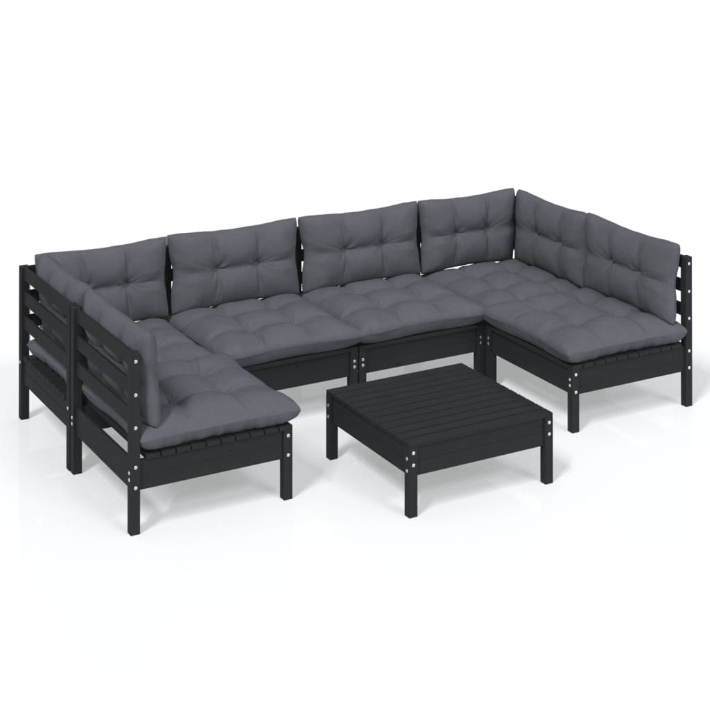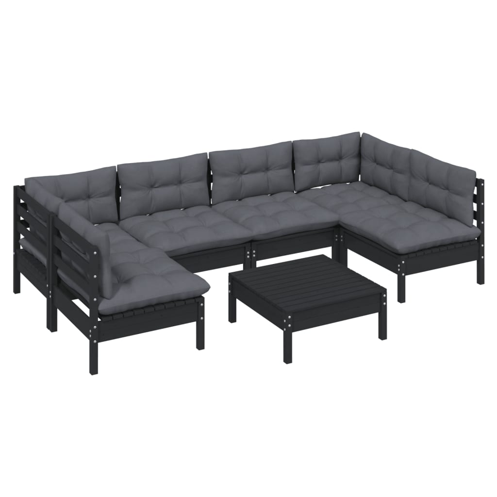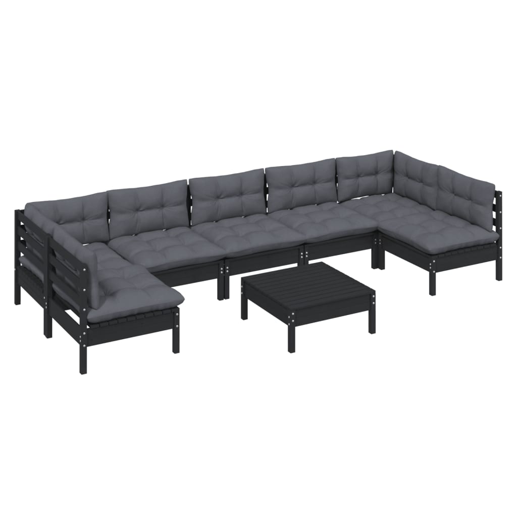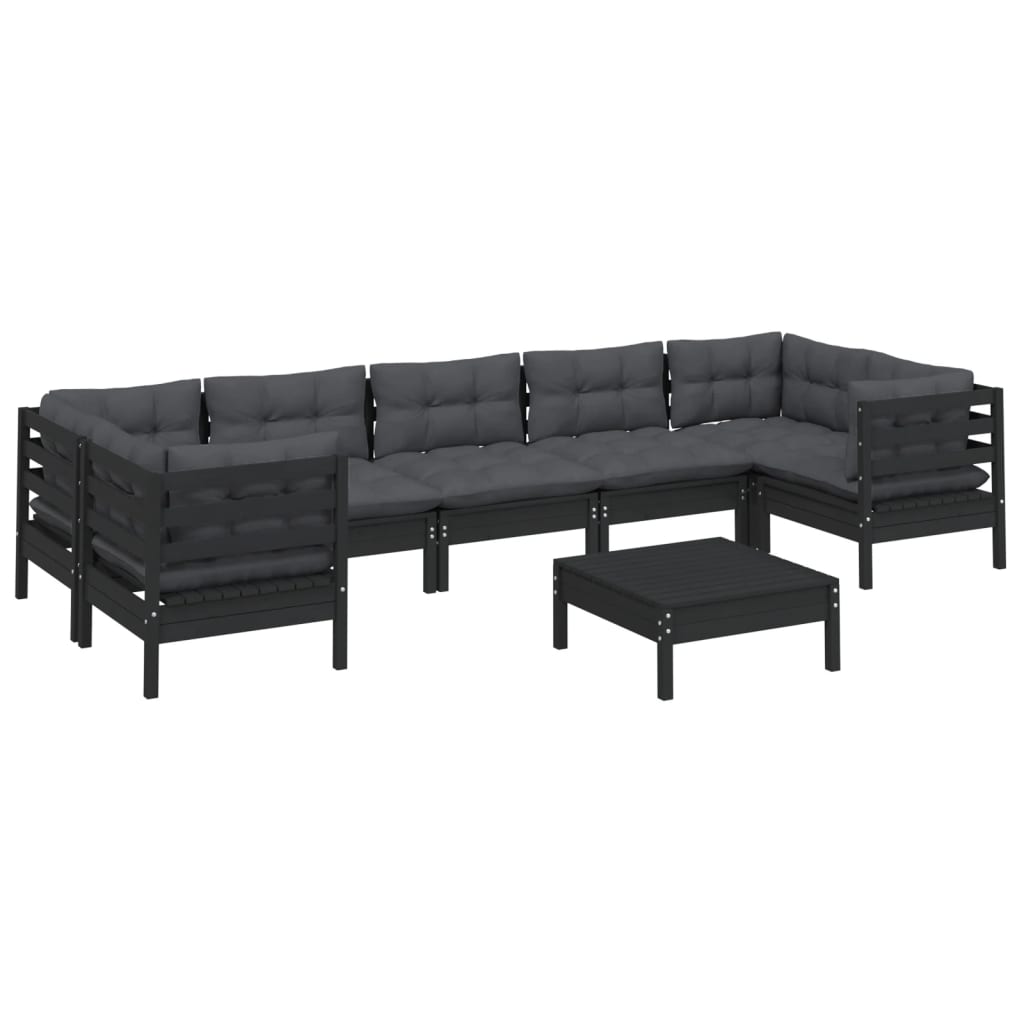 8-tlg. Garten-Lounge-Set mit Kissen Schwarz Kiefernholz